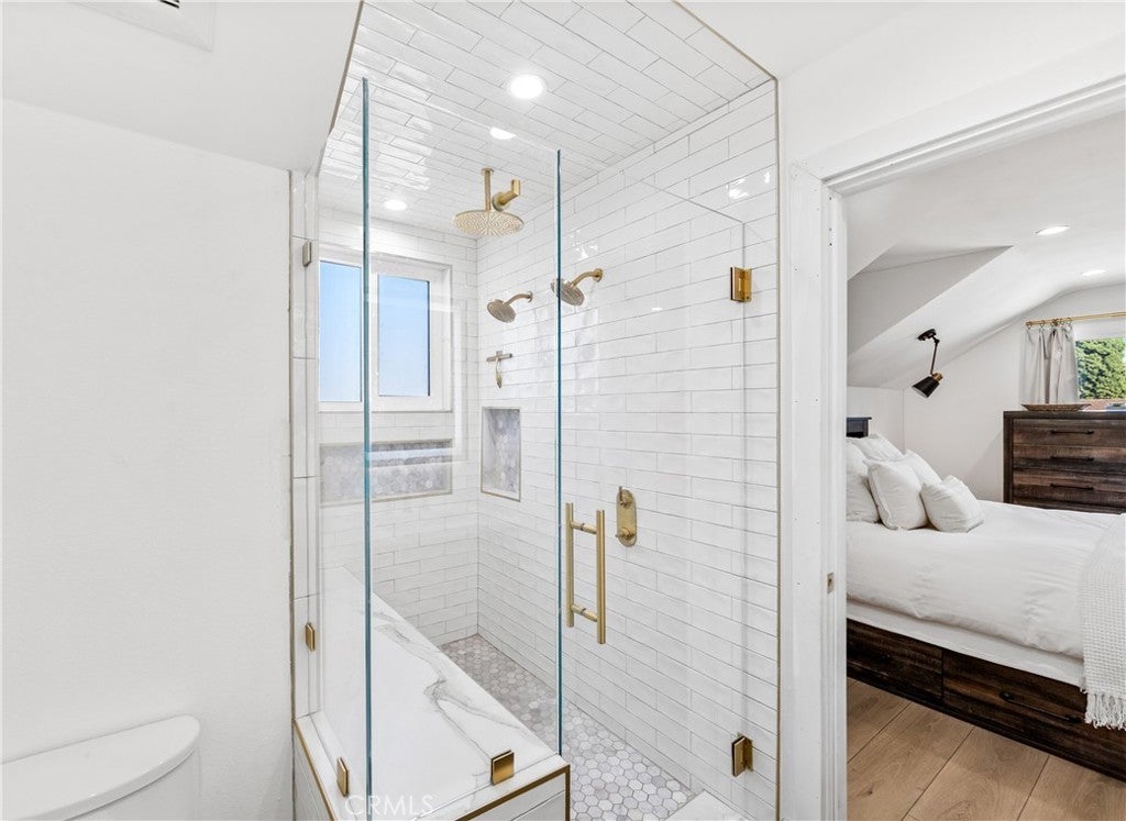 • Interior FeaturesQuartz Counters, Recessed Lighting, Bedroom on Main Level, Walk-In Closet(s), Pull Down Attic Stairs