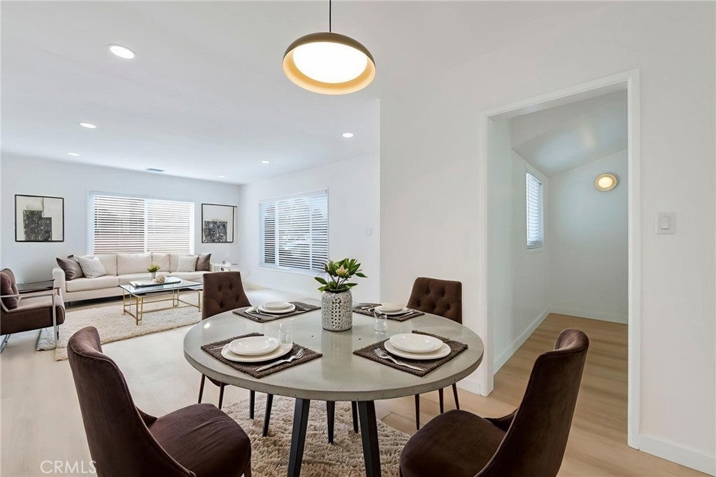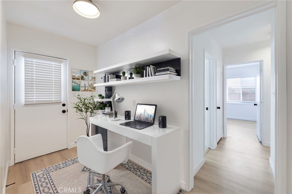 THIS HOME IS A MUST SEE! This rare single-level residence was imagined and designed by @abradesigns to offer an exceptional blend of privacy, space, and modern comfort. Step inside to a bright, open-concept layout filled with abundant natural light, complemented by fresh interior paint, brand-new light oak luxury vinyl plank flooring, and new two-inch Faux Wood blinds throughout. The home features three bedrooms and one bath, plus a valuable bonus office space—ideal for today’s work-from-home needs. Enjoy peace of mind under a brand-new roof, providing worry-free living for years to come. The spacious living room is perfect for gatherings and entertaining, complete with recessed lighting and an adjoining dining area. The thoughtfully updated kitchen showcases white shaker cabinetry, quartz countertops, coordinating hardware, a Fireclay sink, stainless steel five-burner gas range, garbage disposal, a cozy kitchen nook, and direct access to the attached two-car garage. The bathroom has been tastefully reinvented with timeless materials and refined detailing, offering a functional and elevated aesthetic. Enhancements include a new bathtub with a sleek surround enclosure, contemporary hardware and fixtures for both the tub and the light oak floating double-sink vanity with matching storage along with soft-close hardware, modern LED lighting, mirror, and porcelain tile flooring. All bedrooms are generously sized and equipped with modern ceiling fans with LED lighting. The primary bedroom offers enhanced privacy, expanded space, and a generous closet. Additional improvements include new contemporary light fixtures, wide baseboard, new designer door knobs, new HVAC unit metal enclosure, a smart Google Nest thermostat, brand-new 100-amp electrical panel, new garage door, exterior paint, exterior lighting, and mailbox. For year-round comfort, the home also features double-pane windows and central air conditioning and heating. The private block-wall backyard offers a vast space landscaped with drought resistant plants and a concrete patio area that provide endless possibilities for outdoor enjoyment, gardening, and more. Added value comes with the attached two-car garage offering generous storage, washer and dryer hookups, and an oversized driveway with potential RV parking. Conveniently located near the 5, 605, and 91 freeways and close to schools, shopping, dining, and the neighboring communities of Cerritos, La Mirada, Santa Fe Springs, and Whittier.