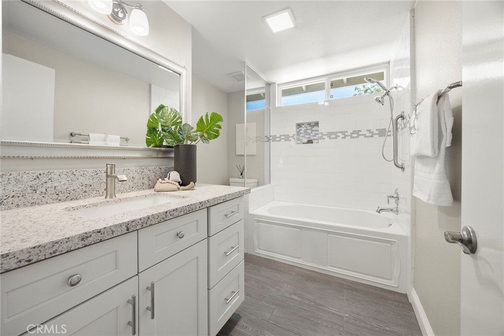 Stunning REMODELED home with expansive GUEST QUATERS + Office/Den and 3-CAR GARAGE, situated in one of the most desirable neighborhoods in Sunny Hills of Fullerton! Charming courtyard with lavish landscaping leads to double-door foyer opening out to a spacious living room with intimate fireplace, stylishly remodeled kitchen flows seamlessly to a comfortable family room with wrap around sliding doors, downstairs office with potential of turning into an additional bedroom. Sprawling staircase leads to a massive bonus room which has been turned into a private quarters with living area, two large bedrooms and full bath which can fit various lifestyles including multi-generational living. The pristine condition of this well maintained home continues with a spacious primary suite featuring a walk-in closet and spa-like bathroom with separate soaking tub. Additional comforts include low maintenance backyard with mature trees, covered patio and expansive deck to enjoy outdoor gatherings. Convenient 3 CAR GARAGE and sweeping driveway provides plenty of parking with RV potential. One-of-a-kind property located in prime location just moments away from multiple parks, hiking trails & Laguna lake, zoned for AWARD-WNNING FULLERTON School district.