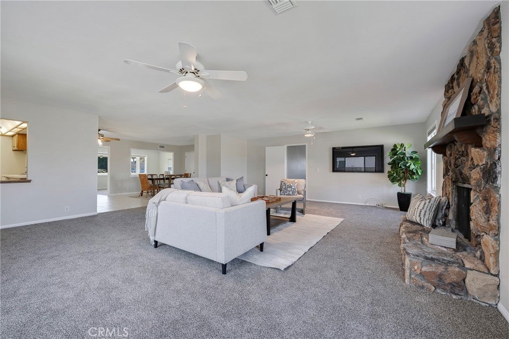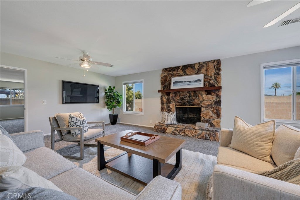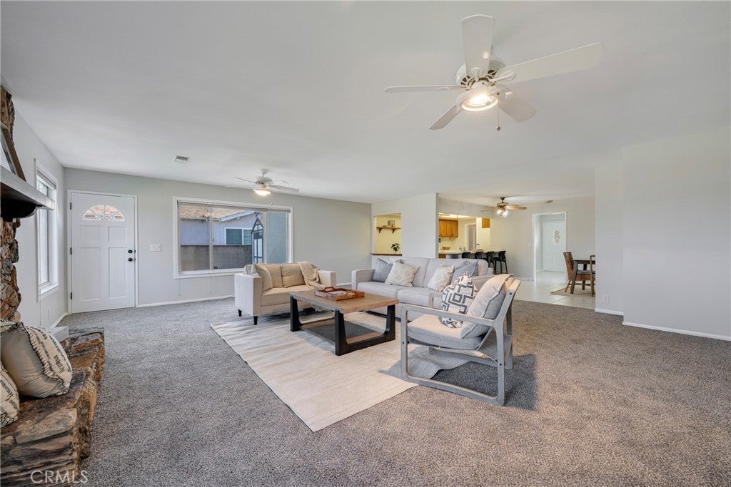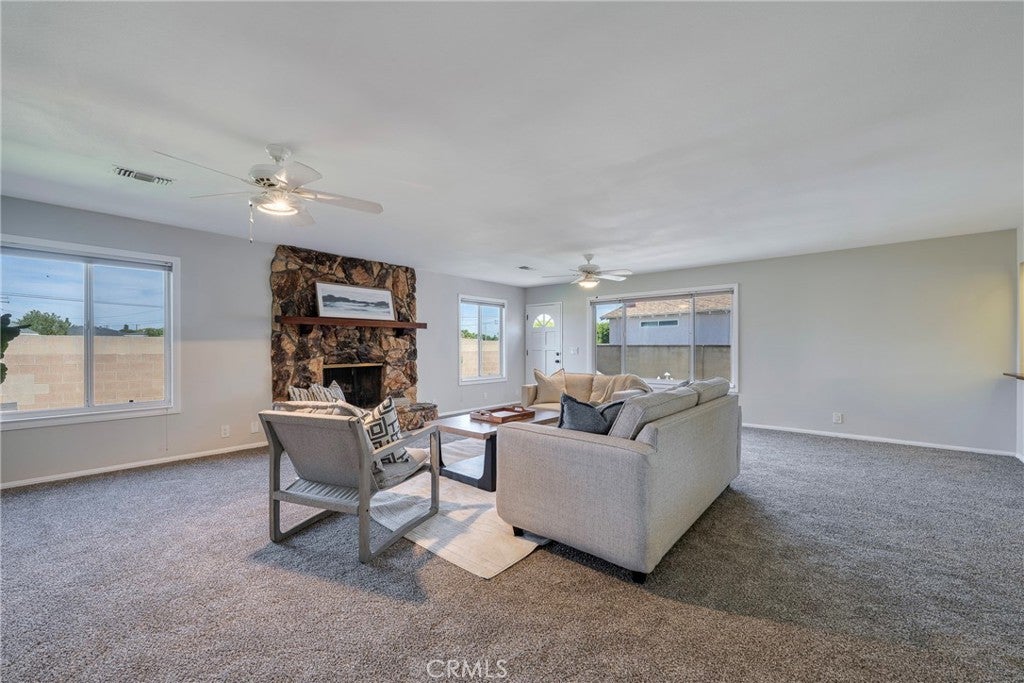 This beautifully maintained and expanded home offers exceptional flexibility with a separate additional living space featuring a private entrance, 2nd private master bedroom, and ensuite bath, perfect for multi-generational living, extended family, or guests. Enjoy gatherings in the oversized family room with a cozy fireplace or cook and entertain in the charming country kitchen complete with an eat-in nook and bar-style seating. Fresh paint and new carpet give the home a clean, move-in-ready feel. Ideally situated at the beginning of a quiet cul-de-sac with no through traffic, this home backs to a beltway with no neighbors directly behind, offering added privacy. Conveniently located less than 5 minutes from the elementary school and just a 10-minute walk to Stanton Central Park, featuring a children’s splash pad and tennis courts. Enjoy easy access to world-famous attractions like Knott's Berry Farm and Disneyland Park, both just a short drive away. This home truly combines space, privacy, and prime location — a must-see! 7401 Grandoaks Drive; You Will LOVE Living Here!