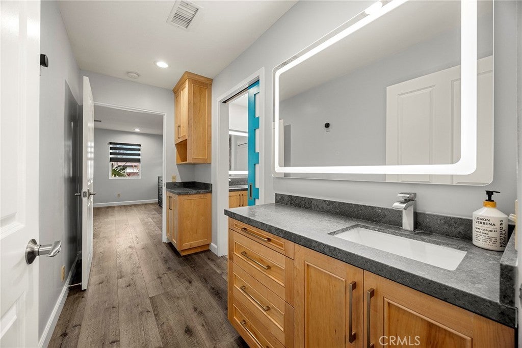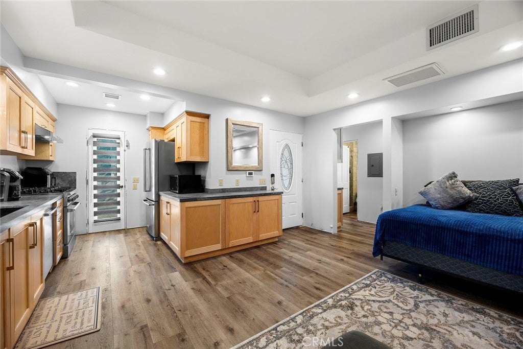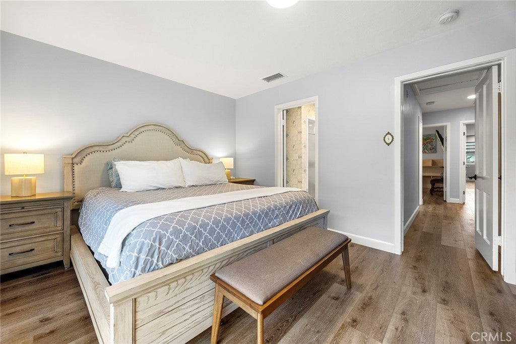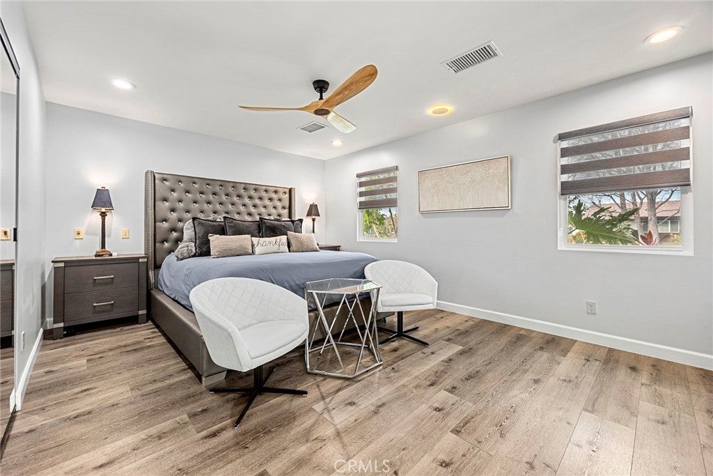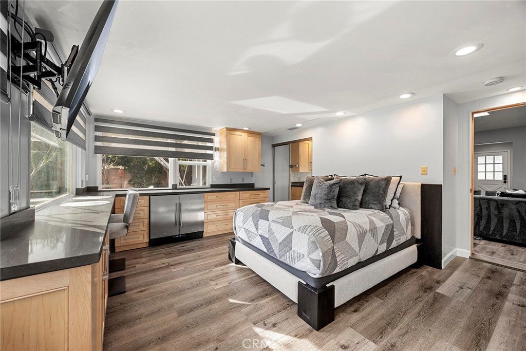 Rare opportunity to own a versatile 5-bedroom, 6-bath single-story pool home offering exceptional flexibility near Chapman University & minutes from the charm of Old Towne Orange. Located on a quiet, tree-lined street in the desirable Cambridge community, this home features a thoughtful layout ideal for multigenerational living, with each bedroom boasting its own exterior doors and ensuite bathroom. The permitted detached ADU at 636 E Adams is currently configured as a one-bedroom residence with a full kitchen featuring a THOR 36" six-burner gas stove, upgraded appliances, spacious living room, in-unit laundry, & two bathrooms, with plans to expand approximately 235 square feet to create a future two-bedroom layout. Step inside the main residence to discover updates throughout, including a kitchen with newer appliances, double oven, soft-close cabinets & doors, VIKING 6-burner gas cooktop, two spa-like remodeled bathrooms, 8mm LVP flooring, & curated leathered quartz countertops. Smart locks on all doors provide convenience & security. The living room is filled with natural light from a skylight, anchored by a cozy fireplace & mantel, with generous closet space for storage. This wheelchair-accessible home boasts a gorgeous roll-in shower with three shower heads, offering both luxury and accessibility throughout. Moving through the home, you’ll notice extensive infrastructure & efficiency upgrades that make this property truly turnkey. A paid 24-panel solar system, solar pool heating, EV-ready with a dedicated 50-amp Level 2 electric vehicle charging circuit, upgraded electrical and CAT6 & 7 wiring, Zoned HVAC system with UV-light technology and newer ducting in the attic, plumbing improvements, energy-efficient heat pump systems provide peace of mind & long-term value. Step outside to discover both the front & backyard wrapped in lush, tropical-inspired landscaping reminiscent of the Disneyland Hotel. The resort-style backyard creates a private retreat with multiple patio areas surrounding a sparkling rock waterfall, spa, and pool. Mature avocado, lime, & tangerine trees add beauty and function, while the pool area is fully fenced with a removable mesh safety gate system. Additional amenities include generous parking, RV parking w/electrical hookups & dump access, & storage structures that enhance the property’s versatility. This home combines flexibility, accessibility, lifestyle amenities, & extensive infrastructure investment. A must see to appreciate!