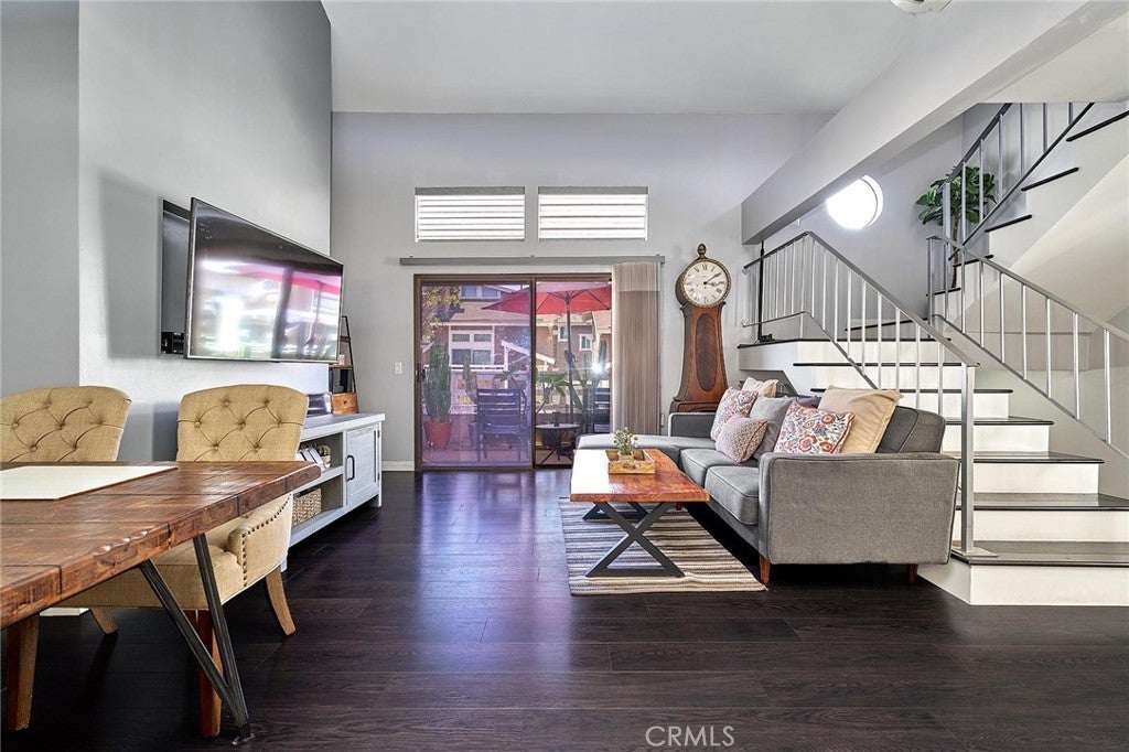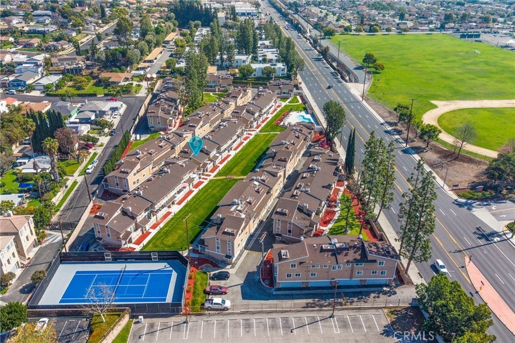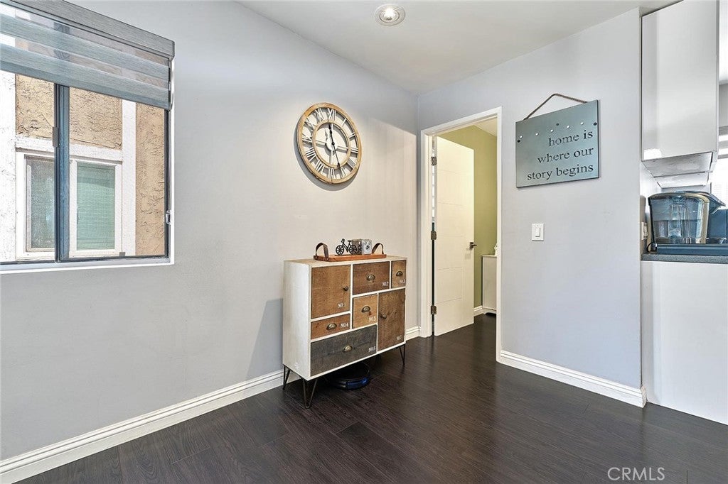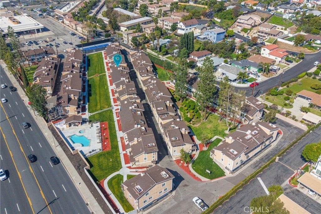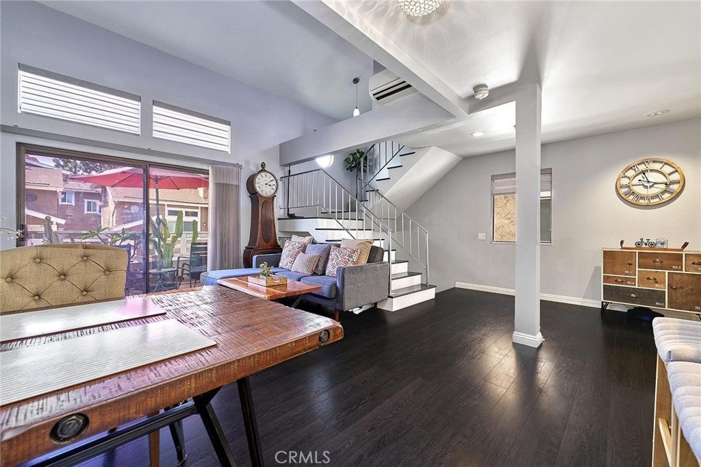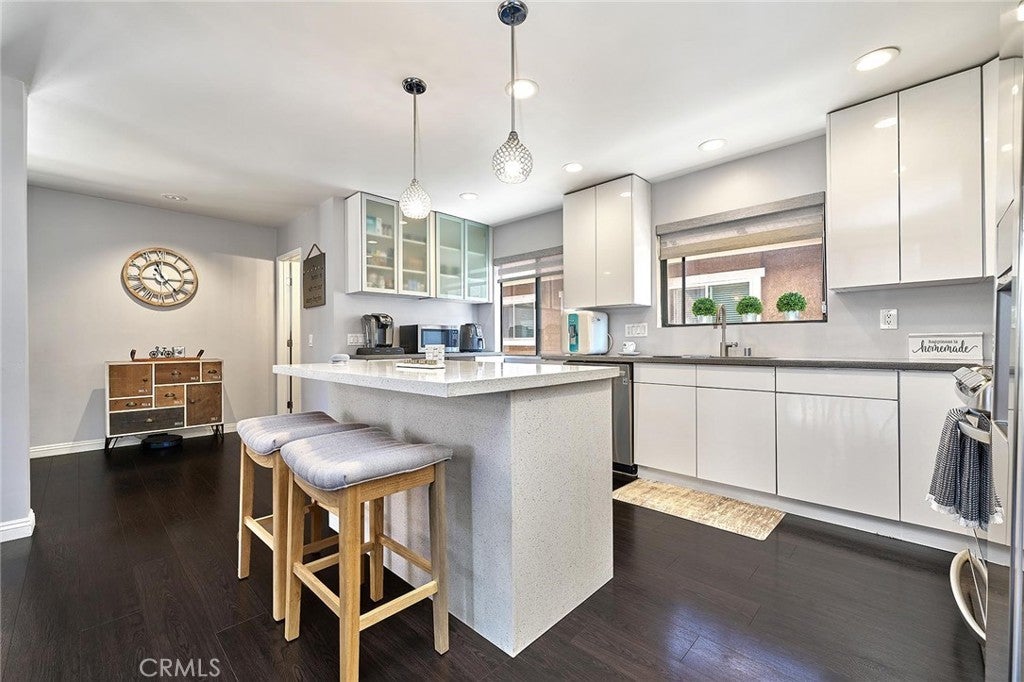 Modern comfort meets everyday convenience in this beautifully upgraded, end-unit condo nestled in one of La Habra’s most desirable communities. With only one shared wall, this home offers added privacy and a light, airy feel throughout. Step inside to discover soaring ceilings and rich dark laminate flooring that create a warm and inviting atmosphere from the moment you enter. The open-concept layout flows seamlessly into a fully renovated kitchen featuring sleek European-style custom cabinetry, including a hidden lazy Susan for added storage and functionality. The spacious island doubles as a breakfast bar and is topped with speckled quartz countertops, complemented by a full suite of stainless-steel appliances including a cooktop, oven, refrigerator, and dishwasher—making this space both stylish and practical for everyday living or entertaining. Upstairs, the spacious primary suite provides a peaceful retreat, complete with an adjoining loft area ideal for a home office, reading nook, or personal gym. The en-suite bathroom has been tastefully remodeled with a floating dual-sink vanity and a luxurious jet shower. The guest bathroom mirrors the same modern finishes with a matching floating vanity. Throughout the home, updated window coverings—including sleek zebra blinds—add a stylish finishing touch while allowing for flexible light control and privacy. For year-round comfort, energy-efficient mini split systems have been installed to cool the entire home with ease. Residents also enjoy access to community amenities, including a sparkling pool and spa—perfect for unwinding at the end of the day. Ideally located near Trader Joe’s, Sam’s Club, Walmart, and a wide variety of local dining and shopping options, this home combines modern living with unmatched convenience. Move-in ready and beautifully updated, this La Habra gem is ready to welcome you home.
