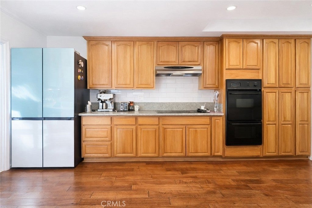This spacious corner-lot home is located in a quiet and established neighborhood in La Habra, offering generous living space and a functional layout ideal for comfortable family living. The home features 4 bedrooms and 2.5 bathrooms, with the primary bedroom and en-suite bath conveniently located on the main level, providing privacy and convenience. Upstairs, you will find three additional bedrooms and a full bathroom, making the layout well-suited for families or those needing extra space. The property includes a separate living room and family room, each with its own fireplace, creating warm and inviting gathering areas. The family room features a wet bar and sliding glass doors that open to the backyard, offering easy indoor-outdoor flow. A formal dining area, along with an additional eating area in the kitchen, enhances the functionality of the home for both everyday living and entertaining. The kitchen is equipped with a cooktop, dual ovens, and a dishwasher. There is also an indoor laundry area with storage. In addition, there is a spacious additional room downstairs that is currently being used as a laundry space. The home features solid wood flooring throughout, providing a warm, elegant feel and easy maintenance. The backyard is mostly concrete for low maintenance, and the corner lot location provides added openness. An attached two-car garage offers convenient parking and storage. Conveniently located near parks, schools, shopping, and dining, this La Habra rental offers space, versatility, and a practical layout in a desirable residential setting.