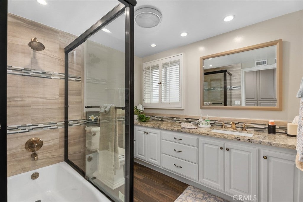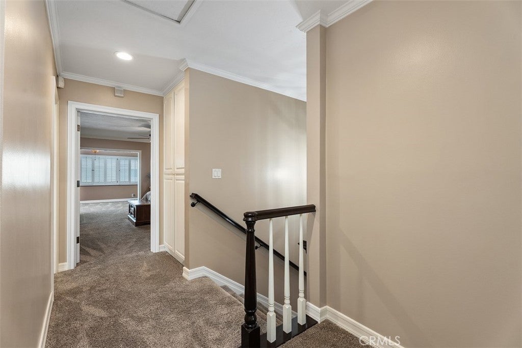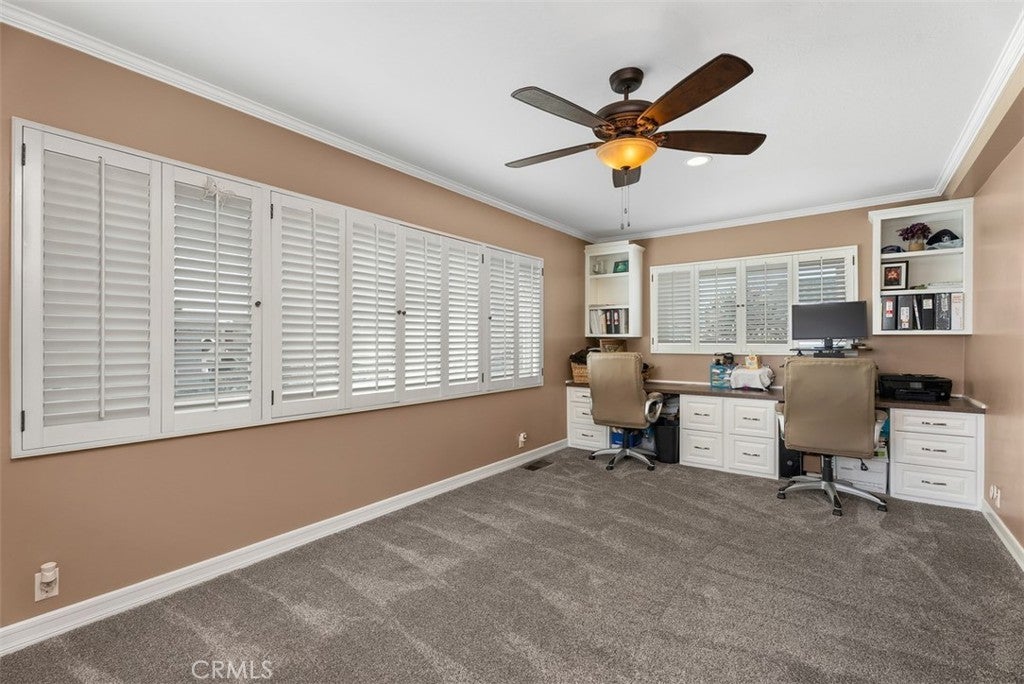 Welcome home to 3580 Teaberry Circle, located in the highly sought-after neighborhood of College Park East in Seal Beach. This beautiful 4-bedroom, 3-bath Cornell model offers approximately 2,791 square feet of living space and sits on a 5,200 square foot lot. Meticulously updated over the years, this home features custom cabinetry, upgraded PEX plumbing, recessed lighting, crown molding, central heating and air conditioning, plantation shutters, a Whole House Soft Water System and Reverse Osmosis, and many other thoughtful upgrades throughout. As you enter, you’re welcomed by a spacious living room and dining area with custom built-ins, creating an inviting space for gatherings and entertaining. The kitchen features custom wood cabinetry with pull-out drawers, granite countertops, a pantry with pull-out shelving, luxury vinyl flooring, and a cozy breakfast area perfect for morning coffee. A large window overlooks the private and lush backyard. Just a step down is the family room, complete with wood flooring, a beautiful stone fireplace, and a large built-in cabinet. French doors open to the patio and backyard, with artificial turf, lush landscaping, waterfall, blending indoor and outdoor living. Down the hall you’ll find the downstairs bedroom with wood flooring and plantation shutters—perfect as a guest room or home office. Adjacent is the updated powder room featuring wainscoting, fresh paint, and a custom mirror. Upstairs are three additional bedrooms, including the spacious primary suite with 2 closets, one a walk-in closet featuring custom organizers, cedar lined and an updated bathroom complete with tiled walk in shower, granite countertops and tile flooring. The original balcony has been enclosed to create a wonderful bonus space ideal for an office, reading nook, or sitting area. The two additional bedrooms are generously sized and each include walk-in closets with custom organizers. The hallway bathroom has a shower/tub combo, along with granite countertops, a bluetooth speaker system and wood shutters. The attached garage includes custom cabinets, built-in shelving, finished flooring, and abundant storage. Located within the award-winning Los Alamitos School District, this home is just minutes from beaches, parks, shopping, restaurants, and convenient freeway access. College Park East also features its own parks and tennis courts, making it a wonderful community that truly captures the best of Seal Beach living.