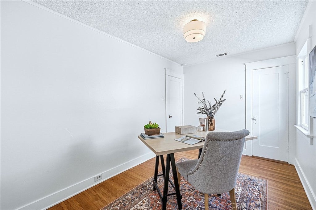 This classic 1925 Spanish home blends historic charm with modern comforts, and features 3 bedrooms, 2 bathrooms and a den. This home has tons of character including coved ceilings and original oak hardwood floors, front-facing vintage windows, and the fireplace with period art-tile and original built-ins. Step inside to the spacious, sunlit living room that flows seamlessly into the dining area, which is open to a generous kitchen with abundant cabinetry and counter space. Beyond the kitchen, you'll find a versatile bonus room—perfect as a den, home office, or formal dining area. Sliding glass doors lead to a tranquil backyard space, ideal for gardening or unwinding. The home has been freshly painted and new light fixtures have been recently installed. Other updates include foundation reinforcement, a new gas line, electrical updates, several updated windows, and a heat pump (with AC hook-up ready!). Located in a cozy neighborhood with other bungalows, this home offers peaceful living while keeping you close to the vibrant energy of Belmont Heights. Enjoy nearby shops, restaurants, and community life, with additional dining and shopping options just a short stroll away. Don’t miss this opportunity to own a piece of architectural history, thoughtfully updated for today’s lifestyle.