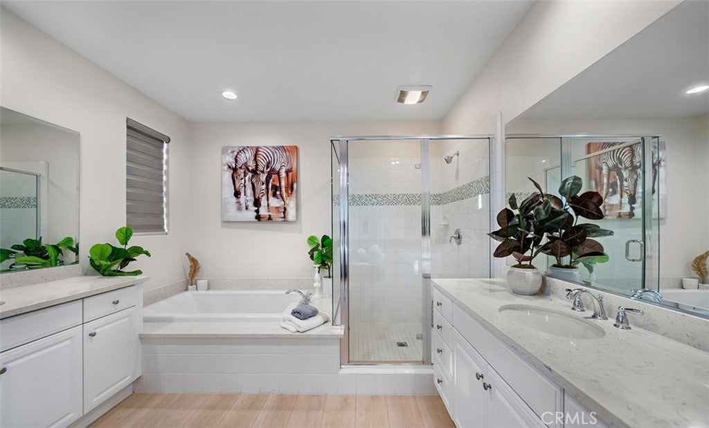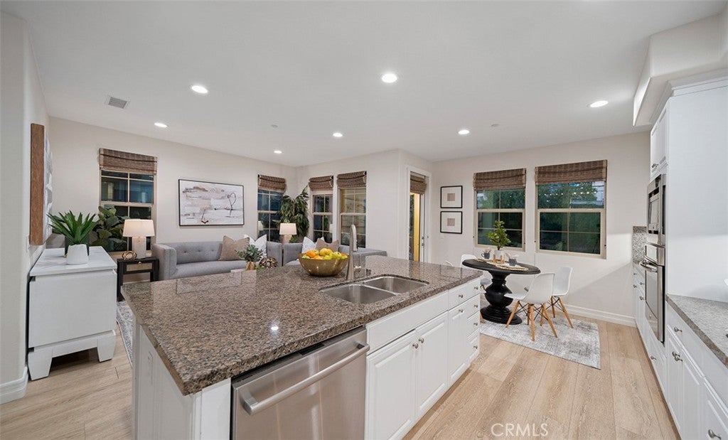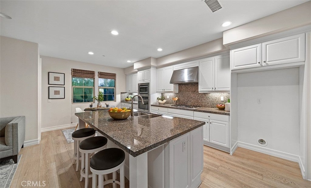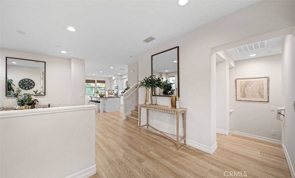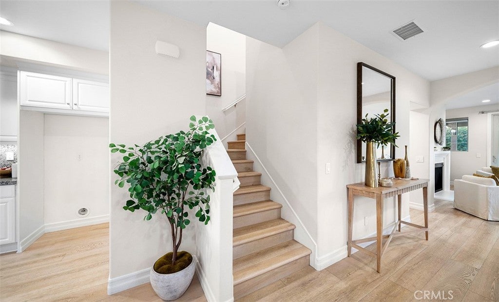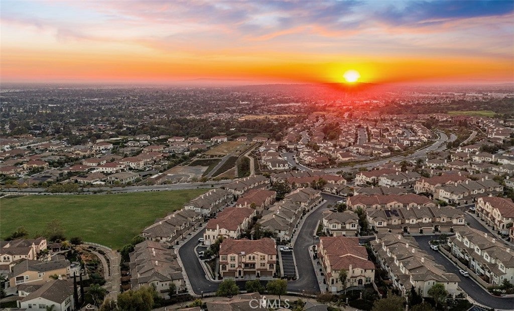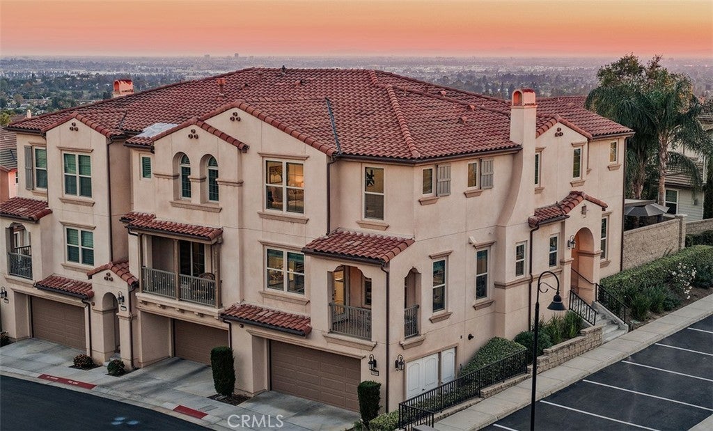 Tucked into the quiet hillside of Yorba Linda is the Palisades in Vista Del Verde, 18689 Clubhouse Drive offers the kind of everyday ease that makes Yorba Linda feel special. Mornings can start with a walk through quiet, well kept neighborhood lanes, then a quick stop at Black Gold Golf Club just up the road. Weekends can mean pool time, a spa soak, a workout at the community gym, or an easy afternoon at the playground while neighbors catch up. You will also be the talk of the town with the approximately 50' x 24' garage which could fit up to 6 cars. Yes. Up to six cars (four larger cars and a golf cart). Inside, this 2,303 square foot end-unit Taylor Morrison luxury townhome lives bright and open and includes peek-a-boo city light views. The gourmet kitchen anchors the main level with a grand center island, granite counters, a designer backsplash, 5 burner cooktop, and stainless steel appliances. The kitchen flows into the dining area and family room, where a cozy fireplace sets the tone for relaxed nights in. Step outside and you will love the privacy of your own backyard, this is a desirable end unit with low maintenance living in mind. There is also a sitting balcony off the kitchen, perfect for coffee, sunset views, or a quiet moment between errands. Upstairs, the primary suite feels like a retreat, with a large walk in closet and a beautifully upgraded bath featuring dual quartz vanities, a soaking tub, and a glass enclosed shower. Two additional spacious bedrooms, a full bath, and a laundry room with extra storage and a utility sink complete the upper level. The upgrades continue with custom Hunter Douglas electric blinds, upgraded flooring, recessed lighting, a tankless water heater, and of course the rare 50' x 24' garage with epoxy flooring, water softener and tankless water heater. Beyond the front door, life in Vista Del Verde is built around comfort and confidence. The Palisades offers resort style amenities including a pool, spa, clubhouse, BBQ area, fitness and weight room, and a playground. You are also minutes from local trails, parks, and the new Downtown Yorba Linda Entertainment Center for dining, movies, and community events. Add in the calm, residential feel Yorba Linda is known for, along with highly regarded schools nearby, and you have a home that supports a full lifestyle, friendships, family and memories. 18689 Clubhouse Dr is the one you will want to experience in person.
