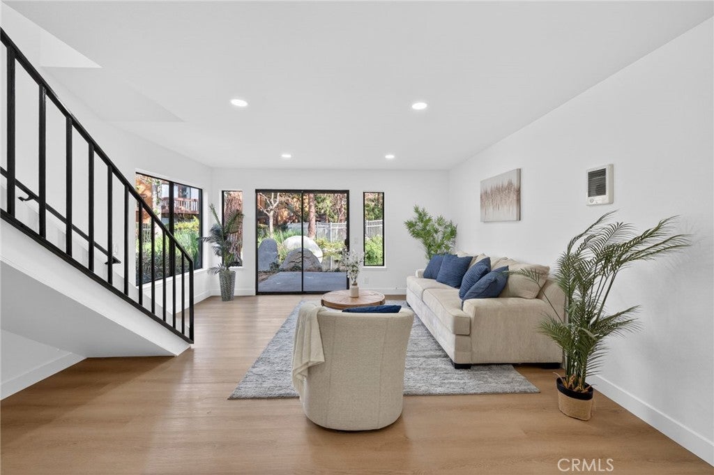 The moment you step inside, your eyes go straight to the water. Framed perfectly by the living room and patio doors, the pond sits directly in front of you—an instant exhale that makes this home feel less like a condo and more like a private retreat. Set behind the gates of Benton Bay, a community loved for its scenic pond views, towering pines, and resort-like grounds, this rarely available 2-bedroom townhome-style residence delivers the kind of privacy buyers search for: no one above or below, peaceful surroundings, and a setting that feels miles away from the city. Natural light pours through expansive windows, and the main living space flows effortlessly to a pond-view patio—your front-row seat to morning reflections on the water and quiet evenings under the trees. Inside, the home has been thoughtfully reimagined with a clean, modern aesthetic that feels calm, cohesive, and elevated. The open kitchen is inviting and functional with quartz surfaces, stainless appliances, a pantry, and a chandelier that adds warmth and character—perfect for casual mornings at the counter or hosting friends without feeling boxed in. A second modern chandelier above the stairs adds a designer touch and ties the space together beautifully. Upstairs, vaulted ceilings in both bedrooms create an airy, spacious feel. The primary suite features a walk-in closet and dramatic window lines and upper accent windows flood the bedroom with natural light. The second bedroom offers a sleek black-framed mirrored closet, ideal for guests, an office, or a nursery. The bathroom continues the elevated tone with quartz finishes, an LED mirror, and a spa-inspired 10” rain shower system—simple, clean, and relaxing. Practical comforts are here too. Some are in-unit washer/dryer area, covered carport and plenty of guest parking. And when you’re ready to leave your “retreat,” enjoy Benton Bay amenities including pool/spa, tennis courts, and fitness center—all surrounded by lush landscaping and water features that make this community truly one of a kind. If you’ve been waiting for a 2-bedroom in Benton Bay, this is the one that makes you stop scrolling—turnkey, tranquil, with direct views of the water.