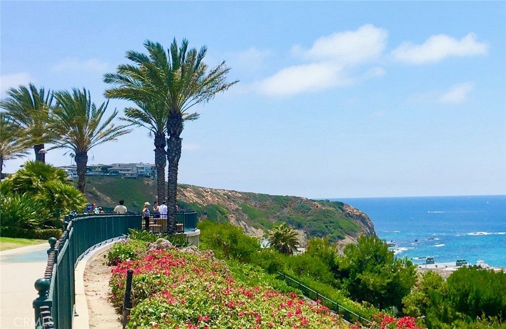Strands Beach home, Catalina and partial ocean views are visible from the primary bedroom / patio and second bedroom. This beach home is a 3Bedroom, 2 Bath, single story, located on the ground floor. The 3rd bedroom slider opens to the fenced front porch. Premium location in Monarch Beach near 5 star hotels, across from Strands Vista Park and steps to Strands Beach. Entering through the front door provides an open concept view of the living room with wood burning fireplace, dining room, kitchen island and 2nd patio off the living room for private outdoor dining. Patio and party lights provide ambience. New full size LG washer / dryer, refrigerator. and microware vent hood. Recently updated with brand-new energy efficient windows, new window covering, ceiling fans in every room, 3 large screen TVs, optional electric fireplace, new light fixtures, hardware, paint, bathroom safety grab bars, hand held and rain shower heads. the 2nd bathroom has a bench seat for added safety. there is tile floor through out and the wood burning fireplace has a floor to ceiling stacked stone surround. A spacious closet off the front porch houses beach equipment and bikes can be locked on the front porch fence. This home is in a quiet section of the Niguel Beach Terrace community, south of the busy entrance/exits to Strands Beach parking lot and is set back from Selva road. There is a Community pool, jacuzzi, selected adult jacuzzi and electric car charging stations. It is walking distance to all Dana Point has to offer, the special events, free trolley car rides, restaurants, craft bear sports, and the harbor for whale watching. Option of purchasing fully furnished and equipped for immediate move-in, ready to enjoy as a 2nd home and /or vacation rental for cash flow. Current bed configuration sleep 6. Heating is hot water circulation system provided by HOA. All 5 star reviews and return guests as an Airbnb Vrbo listing.