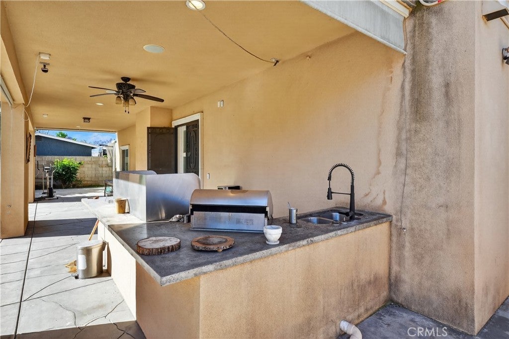 Experience elevated luxury in this exceptional, fully remodeled and expanded estate offering approximately 4,500 sq. ft. of refined living space on an expansive 9,000 sq. ft. lot. From the moment you enter, you are welcomed by a grand foyer with soaring ceilings, dramatic designer chandeliers, and an elegant wrought iron staircase that sets the tone for the home’s sophisticated architectural design. Expansive living areas are enhanced by sleek porcelain tile flooring and an abundance of natural light, creating a bright yet warm and inviting atmosphere. The open-concept layout seamlessly connects the main living spaces to a beautifully appointed gourmet kitchen, ideal for both everyday living and upscale entertaining. The main level features two bedrooms, including a primary suite situated in a comfortably sized room with a spa-inspired bathroom and dual vanities, along with an additional bedroom perfect for guests or extended family. Upstairs, the home continues to impress with four additional bedrooms and a dedicated office, including a luxurious primary suite designed as a private retreat. Thoughtfully curated finishes, statement lighting, and clean contemporary lines are showcased throughout, elevating both form and function. Designed for seamless indoor-outdoor living, the property features a private balcony overlooking professionally landscaped grounds adorned with mature fruit trees and lush greenery. The resort-style backyard is an entertainer’s dream, complete with a covered patio, built-in barbecue island, and fully equipped outdoor kitchen, complemented by a charming gazebo that creates a tranquil and private setting. Offered fully furnished with designer-selected pieces as showcased in the photos, this turnkey residence presents a rare opportunity for immediate luxury living or investment. Featuring a total of six bedrooms, five bathrooms, and a dedicated office, along with a fully paid-off solar system for enhanced energy efficiency, this exceptional home delivers the perfect blend of sophistication, comfort, and convenience in one of Anaheim’s most desirable neighborhoods.