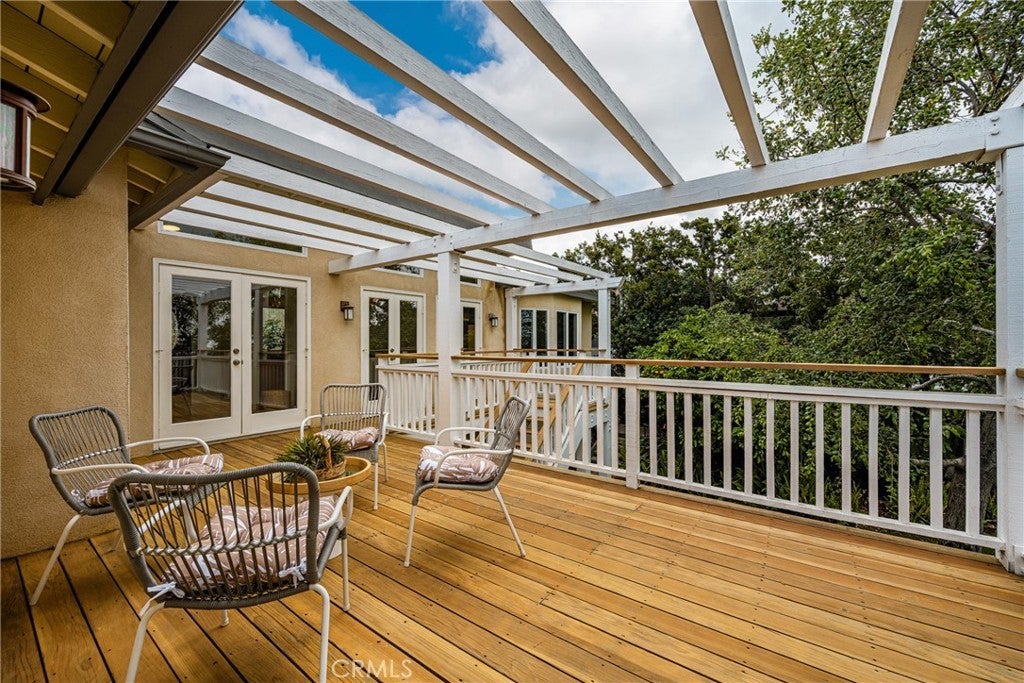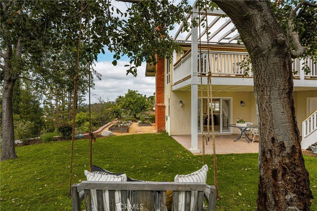 Peaceful Retreat in the North Tustin Hills Discover serenity in this beautiful North Tustin residence nestled in a highly sought-after neighborhood in the scenic hills. Perched at the top of the street, this inviting home captures refreshing ocean breezes and offers peek-a-boo views from Newport Beach to Palos Verdes. With 2926 sq ft of living space and a flexible floor plan designed for indoor-outdoor living, the home offers exceptional comfort and versatility. Key Features: Enjoy outdoor living at its finest on the spacious redwood deck—perfect for relaxing, dining al fresco, or entertaining while taking in scenic tree-top views. Beautiful mature trees frame both the front and back yards, creating a private setting, a garden lover's paradise and perfect backdrop for spectacular sunsets. The inviting living room features a vaulted ceiling, large windows with treetop views, and French doors that open directly onto the deck, seamlessly connecting indoor and outdoor spaces. A separate formal dining room with French doors to the deck and high windows above allowing abundant light and indoor/outdoor flow for hosting dinner parties and special gatherings. The spacious kitchen offers extensive cabinetry and a charming breakfast nook overlooking the lush backyard greenery. Three bedrooms—including the primary suite—are located on the main level along with the living room, dining room, kitchen, and two bathrooms, allowing for convenient single-level living. The lower level expands the home’s living space and features a large family room, office, library, fourth bedroom, bathroom, and covered patio—offering flexibility for guests, extended family, or ADU potential. Mature fruit trees including orange, grapefruit and avocado, along with raised garden beds for vegetables or flowers. Prime location in a coveted North Tustin neighborhood near top-rated schools, shopping, dining, hiking and bicycling, with convenient access to major freeways for easy commuting throughout Orange County. No HOA and no Mello Roos. Why You'll Love This Home: Designed for both relaxation and entertaining, the home offers generous indoor spaces and beautiful outdoor settings. The versatile lower level provides excellent potential for multi-generational living or conversion to an attached ADU. Whether hosting gatherings on the deck, enjoying stunning sunset views, or simply relaxing in the peaceful surroundings, this home offers the perfect blend of comfort, space, and natural beauty.