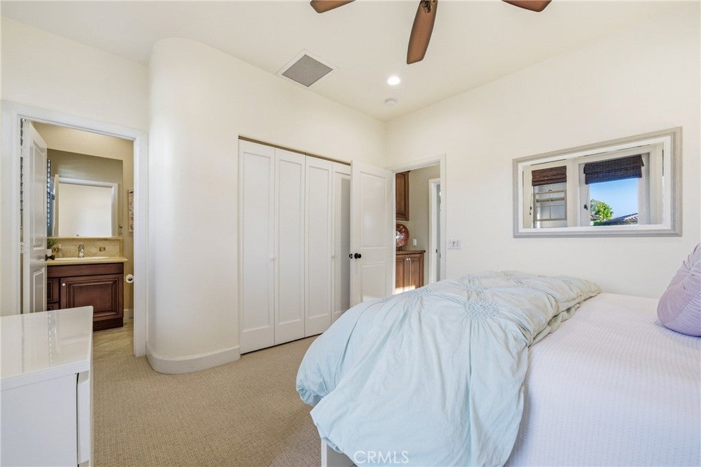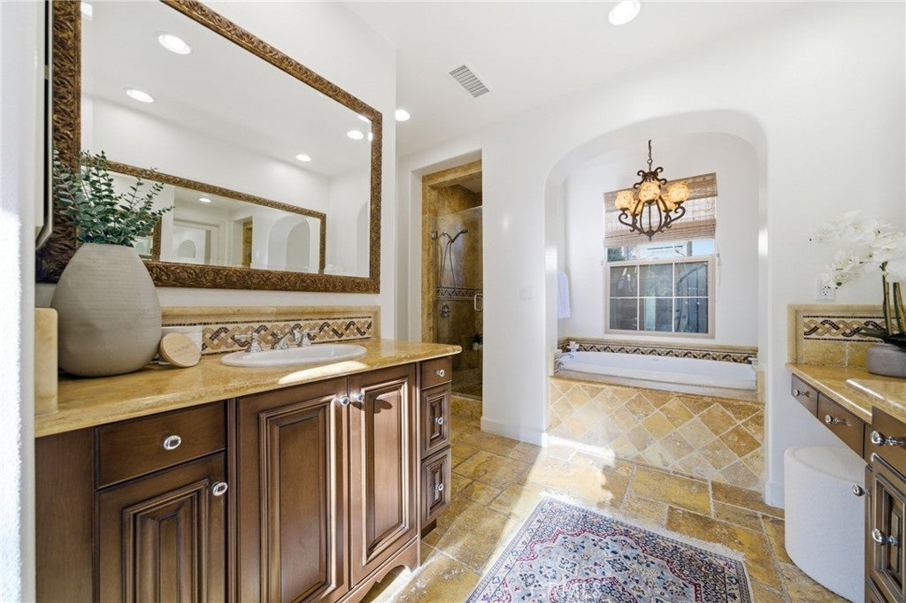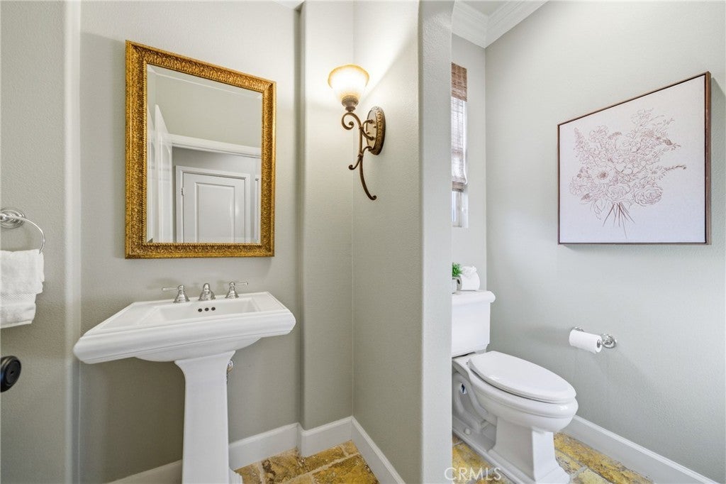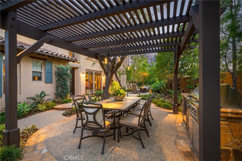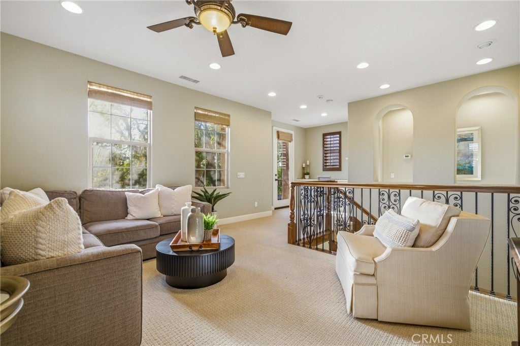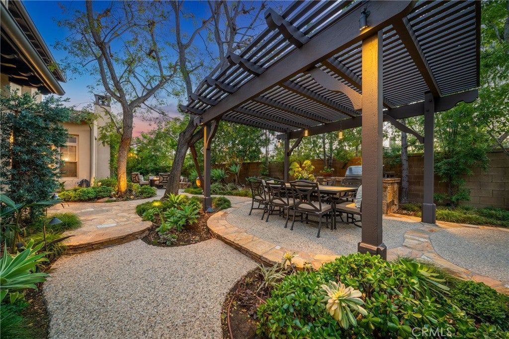 30 Deer Track in Irvine presents a rare opportunity in the highly sought-after Los Colinas community of Portola Springs. This beautifully upgraded home offers 4 bedrooms and 4.5 bathrooms across approximately 2,933 square feet, set on an exceptional 7,971-square-foot corner lot on a quiet, private street—an incredibly rare find in Irvine. With over $240,000 in upgrades throughout, the home blends luxury, comfort, and thoughtful design. A welcoming courtyard opens to an expansive side yard that feels like a private retreat, complete with a large patio cover, barbecue and seating area, custom landscape lighting, mature trees, a fireplace with built-in bench seating, and a tranquil water feature—perfect for entertaining or relaxing. Inside, a formal entryway leads to a front executive office that can also function as a downstairs bedroom. The home was originally designed with a builder option to convert this space into a bedroom while converting the nearby half bath into a full bathroom, allowing it to function as a five-bedroom, four-bathroom residence if desired. One of the most desirable features is the true primary suite on the first floor. The formal dining room flows into the spacious living area and kitchen, featuring granite countertops, a large center island, stainless steel appliances including a built-in refrigerator, recessed lighting, and a farmhouse sink. The kitchen connects to the laundry room and three-car garage. The living room is warm and inviting with a fireplace and large windows overlooking the lush backyard. The first-floor primary suite includes crown molding and a ceiling fan, while the primary bathroom features travertine flooring, dual sinks, a soaking tub, a walk-in shower, and a spacious walk-in closet. Upstairs, a large loft offers flexible living space and can easily be converted into an additional bedroom, as it includes its own full bathroom. The second floor also features a built-in office area, a full hallway bathroom, and two spacious secondary bedrooms, one with a private balcony. The home includes solar and is zoned for Portola Springs Elementary, Jeffrey Trail Middle School, and Portola High School. With its rare oversized lot, privacy, flexible floor plan, and exceptional outdoor living space, this home truly stands out in today's market.