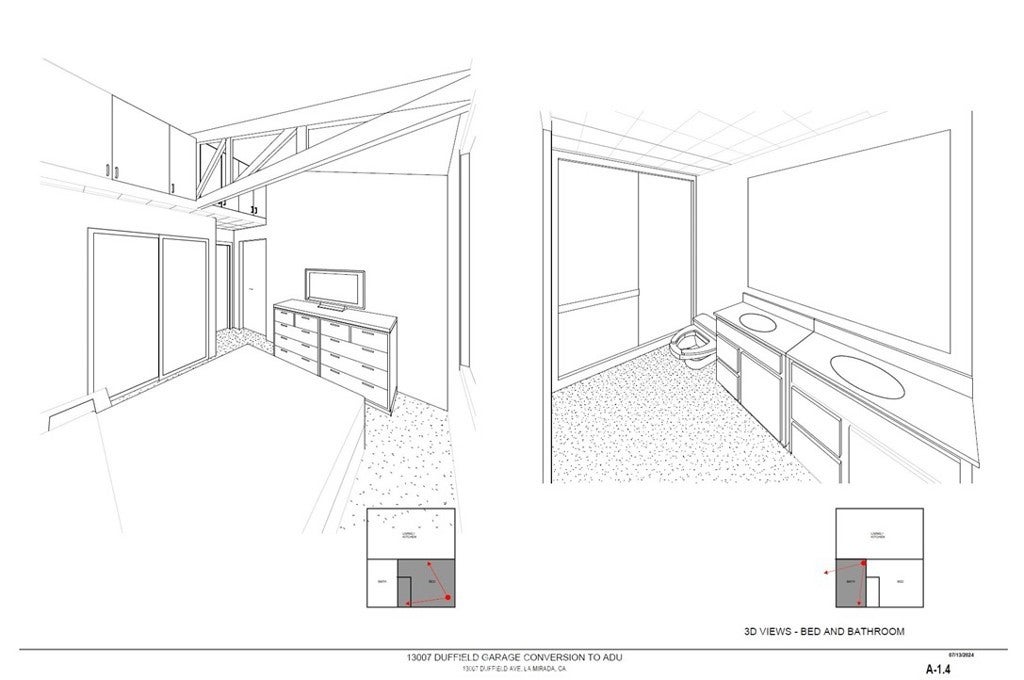 Fully renovated 4-bedroom, 2-bathroom La Mirada home with 1,112 sq. ft. of living space on a 5,072 sq. ft. lot and a detached 2-car garage with Plenty of parking in the large drive way can park many cars. Every room features Mini Split AC/Heating for year-round comfort. The living room boasts fresh paint, recessed lighting, and modern wood vinyl plank flooring. The remodeled kitchen includes quartz countertops, white shaker cabinets, and stainless steel appliances. First-floor bathroom has a glass shower door, second-floor bathroom features a smart toilet, and all closets have been updated. Step outside to a backyard patio, and enjoy a garage with hobbies space. Approved ADU plans allow a 409 sq. ft. garage conversion to 1 bedroom 1 bathroom with Kitchen & livingroom you can start a ADU after close of escrow no waiting save you time and Money this is the investor dream property since all ADU plans is approved & paid. Architecture, Title 24 & Structual engineering has beem fully paid in full only permit fees apply. Additional upgrades: 28-year cool roof, energy-efficient dual-pane windows, PEX plumbing, ABS drains, upgraded 125-amp electrical panel, Tesla Charger and ceiling fans & Bosch Mini split in every bedroom & Living room Bathroom sink & smart Toilet. Prime location near top schools, parks, shopping, and BIOLA University. Move-in ready and full of modern style! Welcome Home