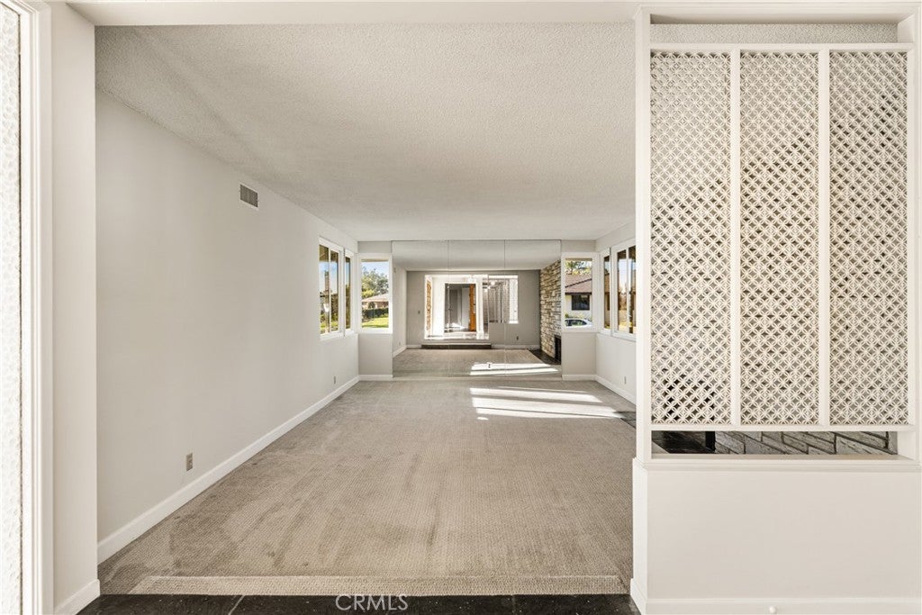 Welcome to this original-owner 1964 classic ranch-style home, ideally situated on a desirable corner lot in the sought-after St. Hubert Wood neighborhood of North Tustin. Offering timeless character and exceptional space, this residence features 4 bedrooms plus a dedicated office and 2.5 bathrooms. Step into the inviting step-down living room, highlighted by a striking stacked stone fireplace—perfect for cozy gatherings. The separate family room offers its own charm with a rock fireplace, built-in bookcases, and a convenient wet bar, creating an ideal setting for entertaining. Sliding glass doors from both the family room and the primary suite provide seamless indoor-outdoor living and direct access to the backyard oasis. Enjoy Southern California living at its best with a private pool and spa, recently updated with all new equipment and pool decking. Complemented by an aluminum-covered patio for shaded relaxation. The backyard also includes a block wall storage area and a dedicated pool room, adding functionality and convenience. Throughout the home, you'll find custom-built cabinetry in multiple rooms, reflecting quality craftsmanship and thoughtful design. This well-maintained property offers a rare opportunity to own a piece of North Tustin’s charm with endless potential to make it your own.