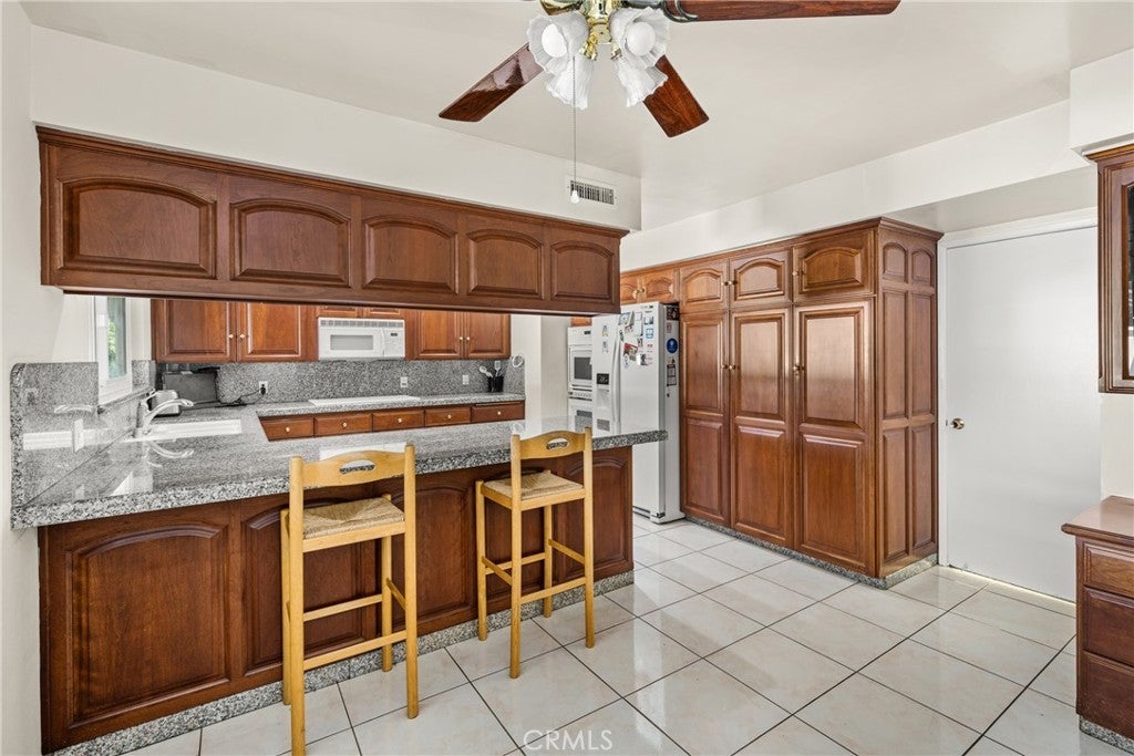 • Interior FeaturesBlock Walls, Ceiling Fan(s), Eat-in Kitchen, Granite Counters, Pantry, Primary Suite, Sunken Living Room, Wet Bar, Workshop