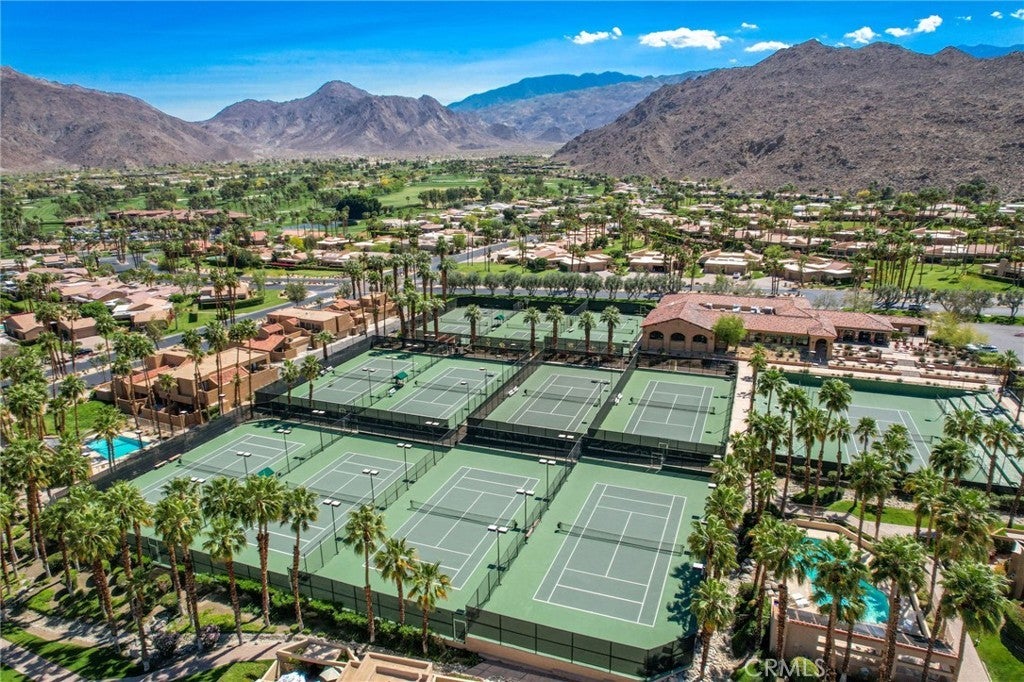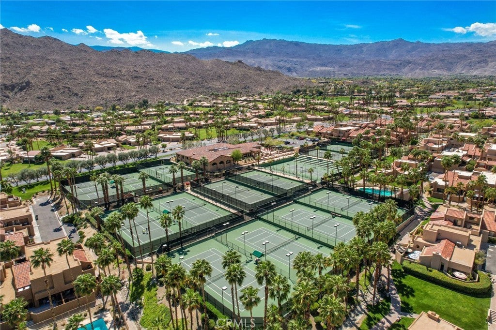 Beautifully situated behind the gates of the desirable Ironwood community in Palm Desert, this charming 2-bedroom, 2-bath condo offers the perfect blend of comfort, scenery, and resort-style living. Ideally positioned with a southwest-facing view overlooking the pool, this home captures stunning desert sunsets and creates the feeling of being on vacation every day. The open floor plan provides a bright and inviting living space, seamlessly connecting the living, dining, and kitchen areas. Just off the living room, a spacious patio is designed as a relaxing retreat—perfect for BBQs, reading a good book, or unwinding with a glass of wine while enjoying views of the pool (just steps away) and the colorful evening sky. The primary bedroom features a sliding glass door that opens directly to the patio with pool views, creating a peaceful indoor-outdoor flow. The primary bathroom includes a walk-in jetted tub with shower head for added comfort and accessibility. The second bedroom offers its own private patio, providing a quiet space for guests or a home office. Additional highlights include an indoor laundry area with a new washer and dryer, a large two-car covered carport, and several recent upgrades including newer windows, newer water heater, a new tile roof, rain gutters, storage cabinets on the side patio, and leased solar. Located just minutes from the world-class dining and shopping of El Paseo, Ironwood residents have access to membership to the two beautiful golf courses (North Course & South Course), the racquet club featuring 9 tennis courts & 10 pickleball courts and a clubhouse—all within a secure, gated community. Short term rentals (7 days or more) are permitted. This is desert living at its best.