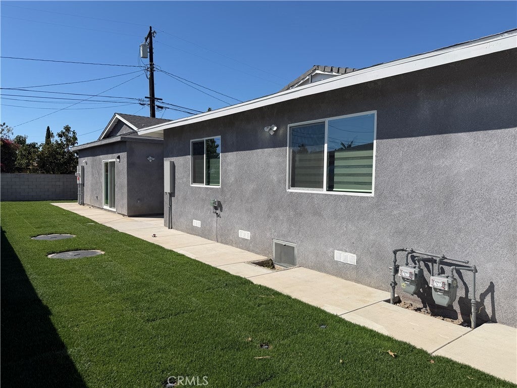 TWO HOUSES ON A LOT!!! Welcome to these 2 beautifully single-family detached homes in the city of Garden Grove on 7,245 square foot lot. The front house is a fully permitted newly and completely remodeled 3- bedroom, 2-bathroom 925 square feet of living space and 2-car attached garage. New Dual pane windows with new window blinds, recessed lighting, vinyl floor through-out the house and a brand new kitchen with quartz counter top. The back house (ADU) is a fully permitted newly built 3-bedroom, 2-bathroom home offering 1,200 square feet with paid-off Solar System. Also has new dual pane windows with window blinds, recessed lighting , and brand new kitchen with quartz counter top and tile floor. This move-in ready residence features a fresh modern interior. Open and functional floor plan creates a seamless flow between living, dining, and kitchen areas, ideal for both everyday living and entertaining. Both units have brand new Central Air system, separate electrical, gas and water meters. All bedrooms are generously sized, offering flexibility for family living, guests, or a home office. Step outside to a private huge concrete driveway with a lot of parking spaces. Conveniently located near schools, shopping, dining, and major freeways (22, 55, and 5 freeway) Each unit has separate address, Plenty of parking spaces.