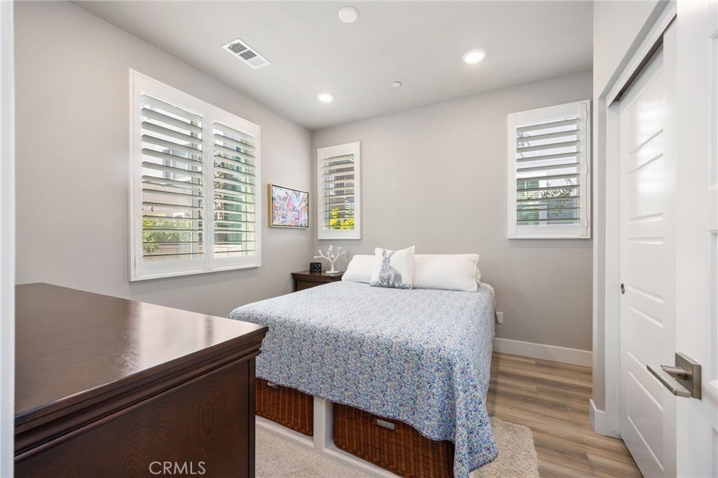 Welcome to this modern three-story residence in the heart of San Pedro, offering style, functionality, and comfort at every turn. As you enter this spacious end unit, you’re greeted by a private front patio that sets the tone for relaxed living. The entry-level features a spacious bedroom with its own full bathroom, perfect for guests or a private office. On the second floor, you’ll find an open-concept living, dining, and kitchen area flooded with natural light. Light-colored floors, recessed lighting, and a seamless layout create a warm, inviting atmosphere. The gourmet kitchen is a chef’s dream, showcasing white cabinetry, sleek black quartz countertops, stainless steel appliances, and a large eat-in island ideal for gatherings. Enjoy the sunny weather from the balcony to enjoy fresh air and neighborhood views. The top floor is home to the expansive primary suite, complete with an en suite bathroom featuring dual sinks and a large glass-enclosed shower. Also upstairs are two additional bedrooms, a full guest bathroom, and a convenient laundry area. Additional highlights include an attached two-car garage for easy parking and storage, paid off solar panels, upgraded plantation shutters and central A/C and Heat. Community features a pool and outdoor spaces. This stunning home combines contemporary design with everyday functionality—perfect for anyone seeking the best of coastal living in San Pedro!