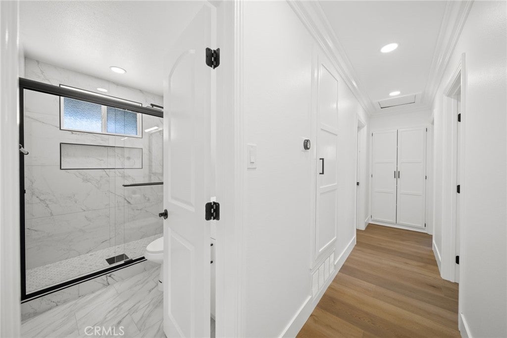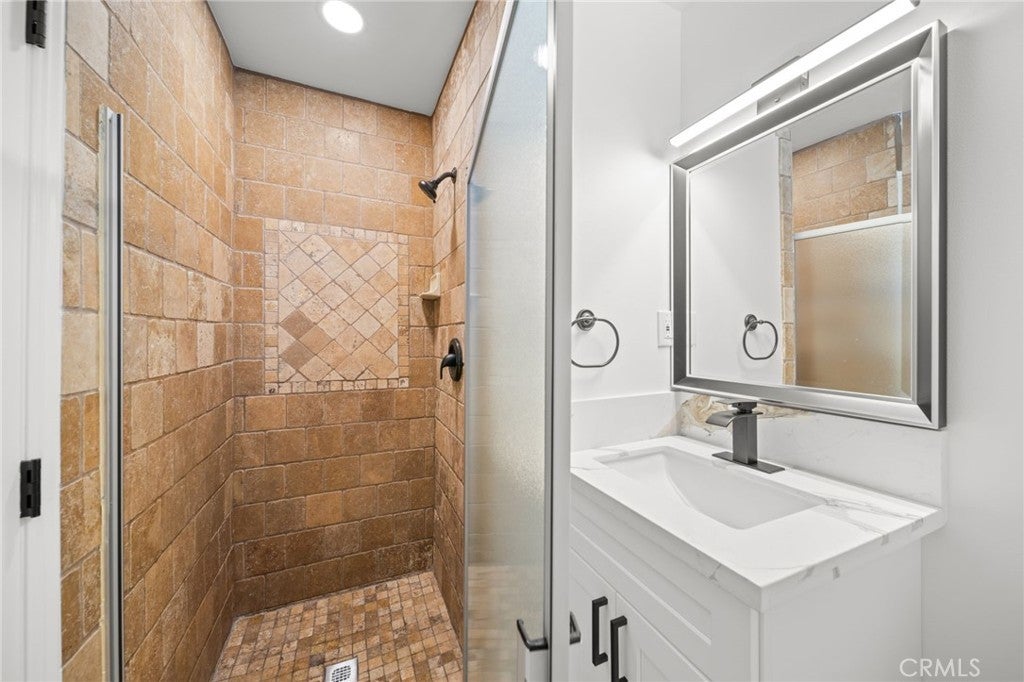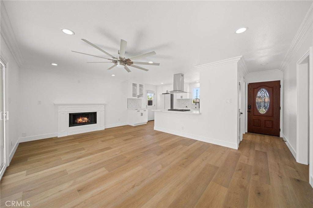 Welcome to this beautifully and thoughtfully remodeled home located in a quiet, family-friendly neighborhood in La Mirada! This turnkey 3-bedroom, 2-bathroom residence sits on a spacious lot and has been craftfully remodeled with modern finishes and attention to detail throughout. The home features new laminate flooring throughout, creating a seamless and stylish look while offering durability and easy maintenance. Double-pane windows provide energy efficiency and allow plenty of natural light to fill the home. The remodeled kitchen showcases granite countertops, ample cabinetry, and a layout designed for both everyday living and entertaining. The primary bathroom has been tastefully renovated with travertine tile and modern bronze finishes, creating a relaxing, spa-like atmosphere. The fireplace has also been beautifully done, serving as a warm and inviting focal point in the living area. Step outside to a large backyard perfect for entertaining, complete with a covered patio ideal for summer BBQs, gatherings, or relaxing evenings outdoors. The yard also features mature fruit trees ready to enjoy, adding charm and character to this wonderful outdoor space. This move-in-ready La Mirada gem offers comfort, style, and space—don’t miss the opportunity to make it yours!