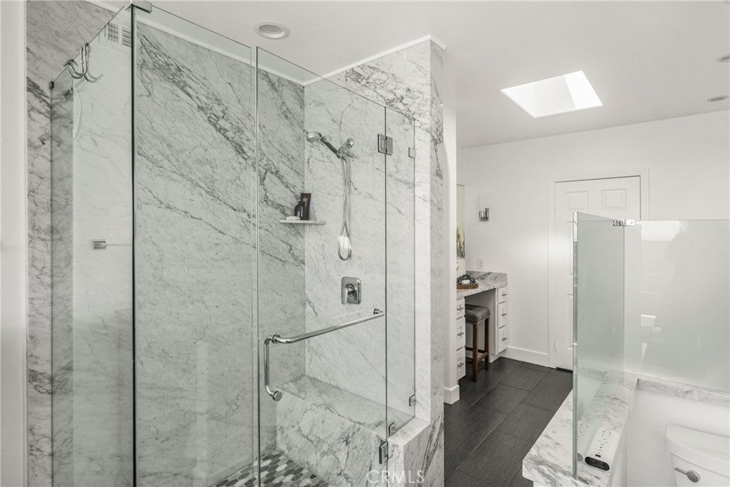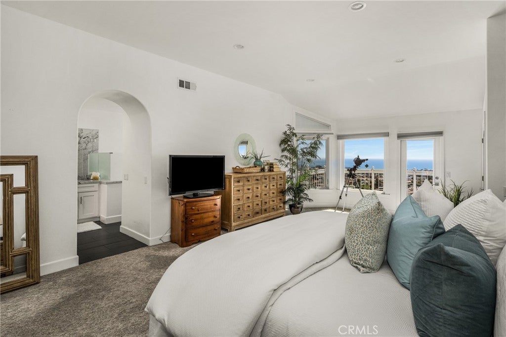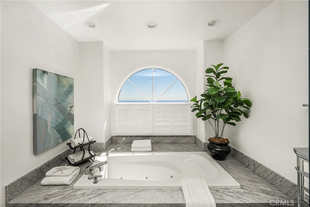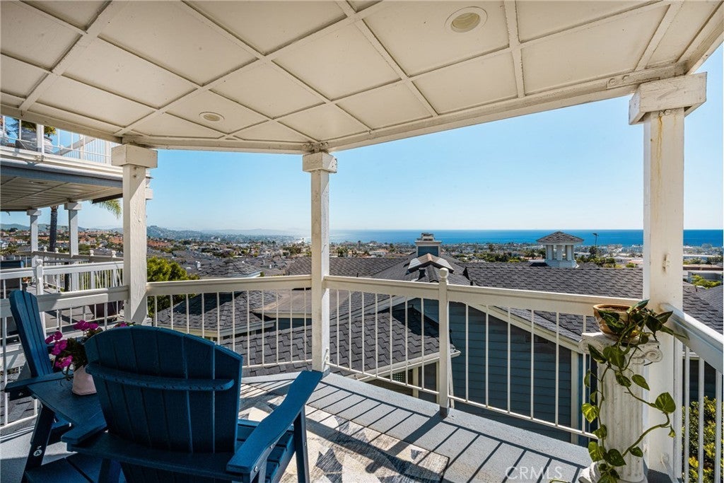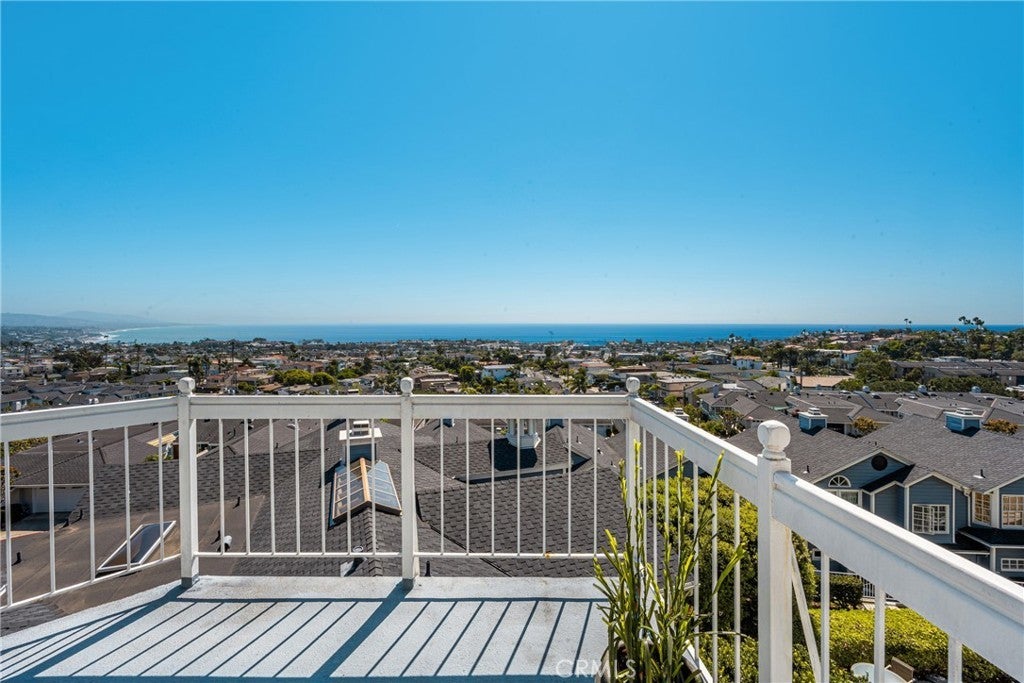 Spectacular Mark Singer designed coastal residence offering breathtaking white-water panoramic ocean and coastline views from sunrise to sunset, with sparkling city lights in the evening. Recently remodeled, this exceptional property blends striking architecture with modern coastal living. Walls of glass frame the Pacific and fill the interior with natural light, while a full-length balcony extends the living areas outward--perfect for morning coffee, evening sunsets, and year-round coastal living. The chef's kitchen features premium appliances, custom cabinetry, Italian marble counters and an effortless connection to the dining and living rooms. A glistening fireplace anchors the main living spaces, creating warmth & sophistication against a backdrop of endless ocean views. The primary suite is a true retreat featuring a romantic fireplace & opening directly to the balcony and coastline beyond. Its spa-inspired bath has been remodeled with a jetted spa tub, separate glass enclosed shower, Italian marble counters and a generous walk-in closet. Two additional bedrooms with full baths provide ideal accommodations for guests or a refined home office setting. Residents enjoy access to the community pool and spa, offering resort-style relaxation within walking distance from the newly renovated town center as well as Dana Point's beaches, harbor, restaurants, shopping and coastal trails. Architecturally Significant - Panoramic White Water Views - An Exceptional Coastal Address!