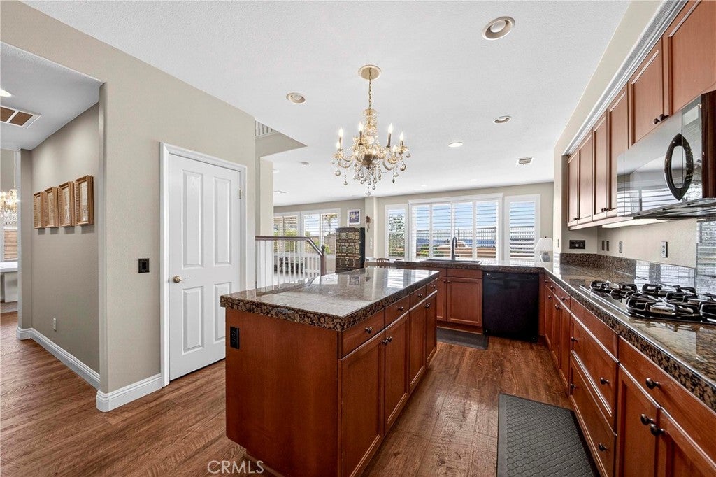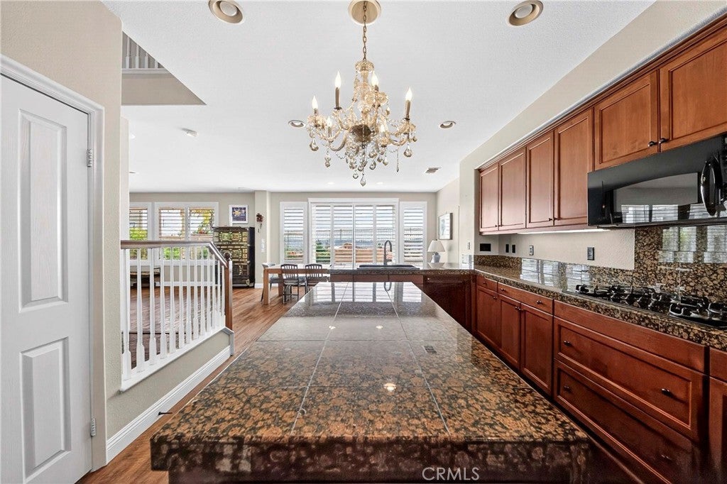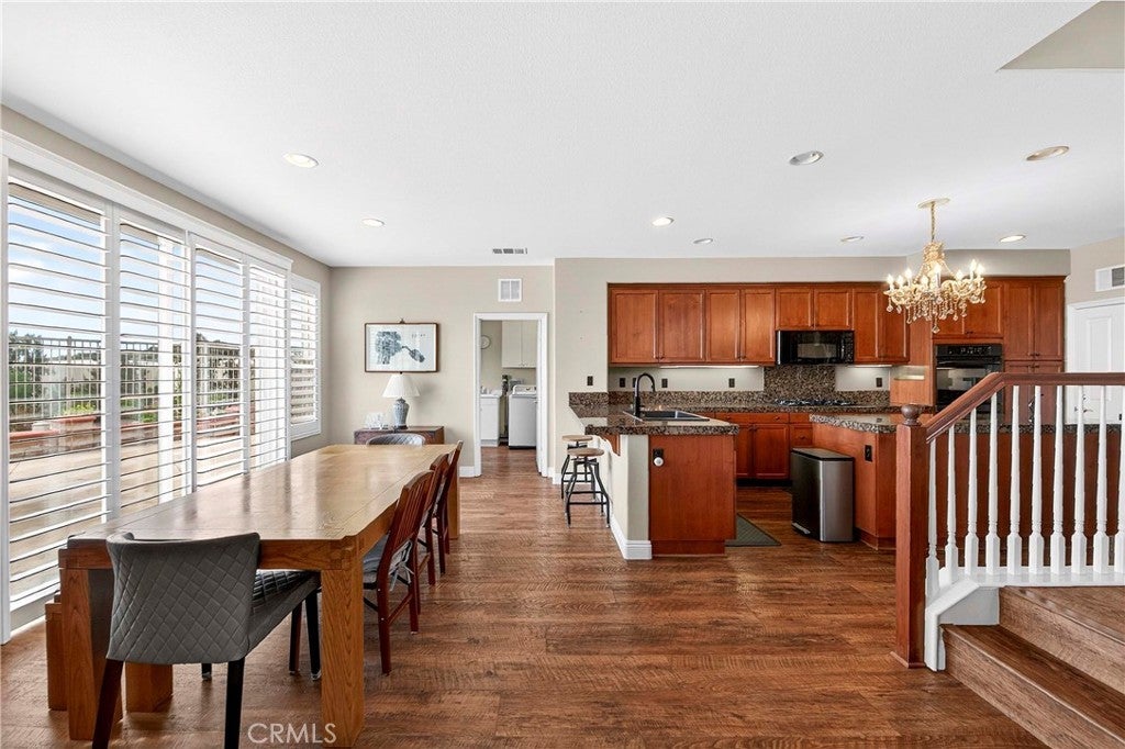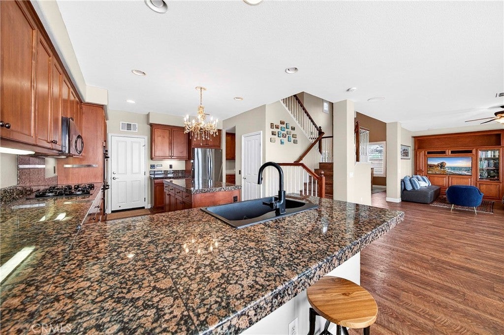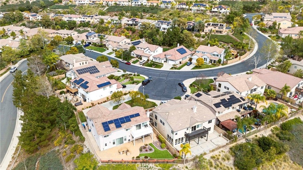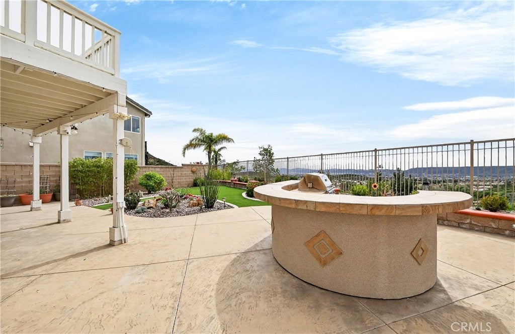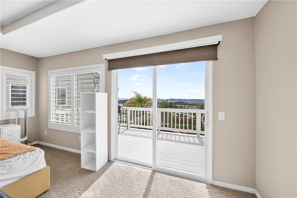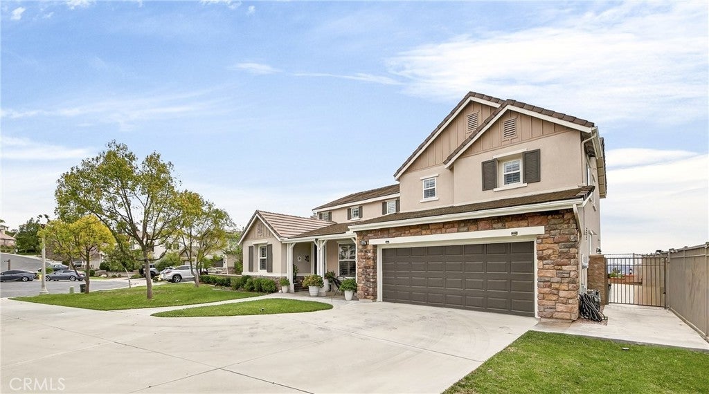 Location, Location, Location!! - Beautiful view home located in the prestigious Greer Ranch gated community, perched on gentle rolling hills overlooking the scenic Murrieta Valley. This spacious two-story residence offers approximately 3,201 sq. ft. of living space with 5 bedrooms and 3 full bathrooms on an 8,276 sq. ft. lot, built in 2004. The home features a desirable floor plan with one bedroom and a full bathroom on the main floor, ideal for guests or multi-generational living. The first floor includes a bright family room with a cozy fireplace, a formal dining area, and a spacious kitchen with granite counters, a pantry, and beautiful valley views. The second floor has 4 bedrooms and 2 bathrooms and a small office/loft area. The primary suite features a sliding door with access to a private balcony where you can enjoy panoramic views of the surrounding hills and city lights. Interior highlights include high ceilings, wood-style vinyl flooring, and window shutters throughout. The large laundry room, located on the first floor just beyond the dining room, has a separate entry/exit to the home. The backyard is also impressive, featuring a barbecue area and a beautifully landscaped garden. The property also includes central air conditioning, a 2-car garage, and leased solar panels. The front yard is spacious enough for RV parking, and as a corner unit, it offers added privacy and quiet. Located in a 24-hour security, guard-gated community with HOA amenities and within the Murrieta Valley Unified School District, this home offers privacy, scenic views, and comfortable Southern California living.
