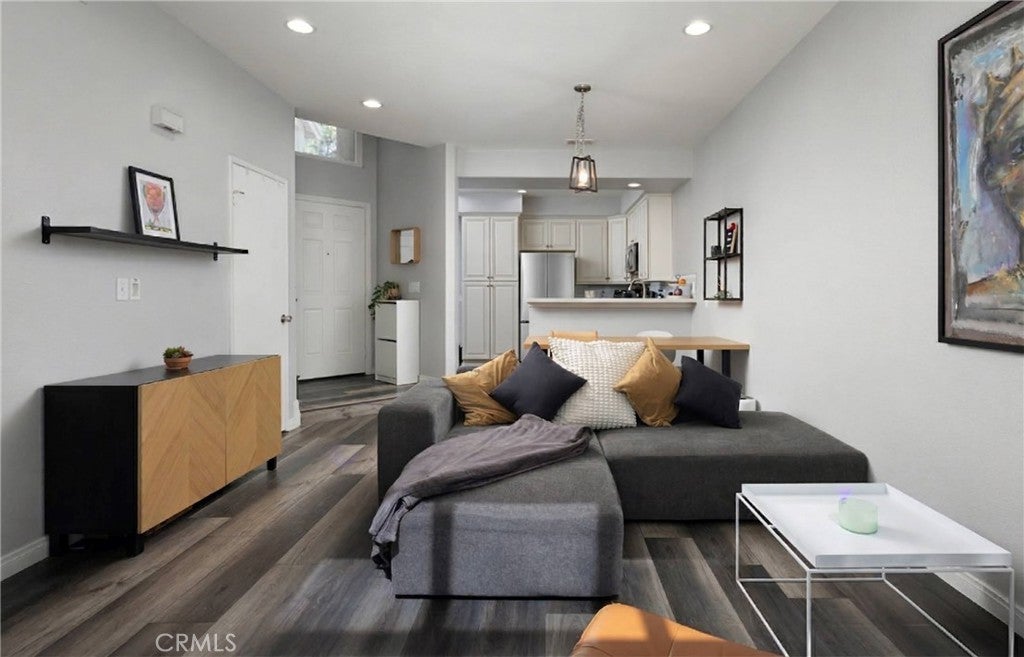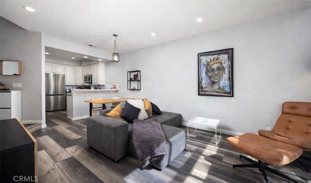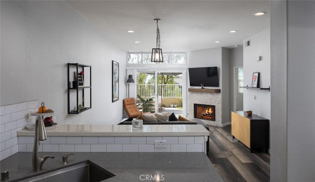 Welcome home to this delightful 3-bedroom, 3-bathroom view home nestled in the highly sought-after Montecido community within Portola Hills in Lake Forest. Boasting 1,256 square feet of inviting living space, this two-story residence built in 1990 offers a smart and functional layout featuring one bedroom and one full bath conveniently located on the main level—perfect for visiting guests or a private office. Additionally there are 2 bedrooms and 2 bathrooms upstairs, including a spacious primary suite. The light-filled interior showcases an upgraded open-concept kitchen with quartz countertops, stainless steel appliances and soft-closing doors and drawers flowing seamlessly into a comfortable living/family room area, highlighted by a warm gas fireplace with stone surround and mantle, ideal for gatherings. The entire home has luxury vinyl plank flooring. Enjoy upgraded low-e windows and sliding glass door, new as of late 2021 York central air conditioning and heating for year-round comfort, plus practical conveniences like an attached one-car garage with in-garage laundry and plenty of guest parking. The water heater is new as of late 2024. Every electrical fixture in the home has been updated (outlets, switches) and the home has LED can lights in the kitchen, living room and both upstairs bedrooms, with ceiling fans in both upstairs bedrooms. All 3 bathrooms have custom shaker cabinets with quartz countertops and new plumbing fixtures as well as newer high efficiency Kohler toilets. As part of the Montecido community, you’ll enjoy low-maintenance living and wonderful community amenities such as a sparkling swimming pool, spa, clubhouse, and fitness facilities. The location is unbeatable, right across the street from Portola Hills Elementary (10/10 on GreatSchools.org) and just blocks from other highly rated schools (Serrano Middle, and El Toro High in the Saddleback Valley Unified district), parks, hiking and biking trails in the nearby Whiting Ranch Wilderness Park and Santa Ana Mountains foothills, plus easy access to shopping, dining, and major freeways (I-5 & 241).