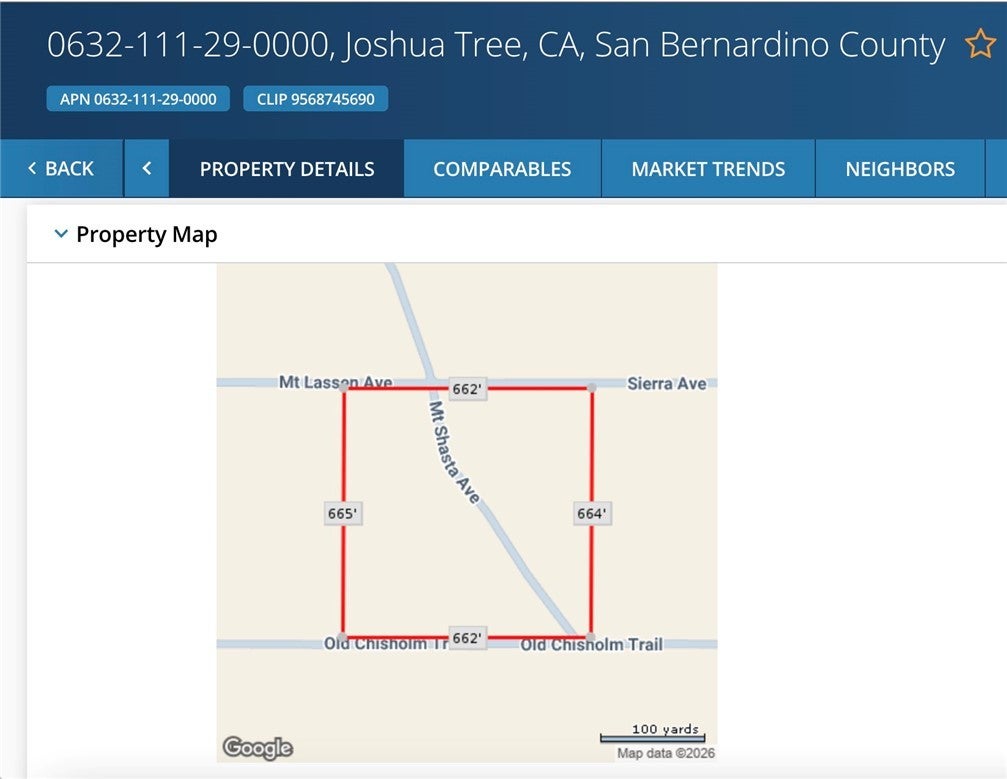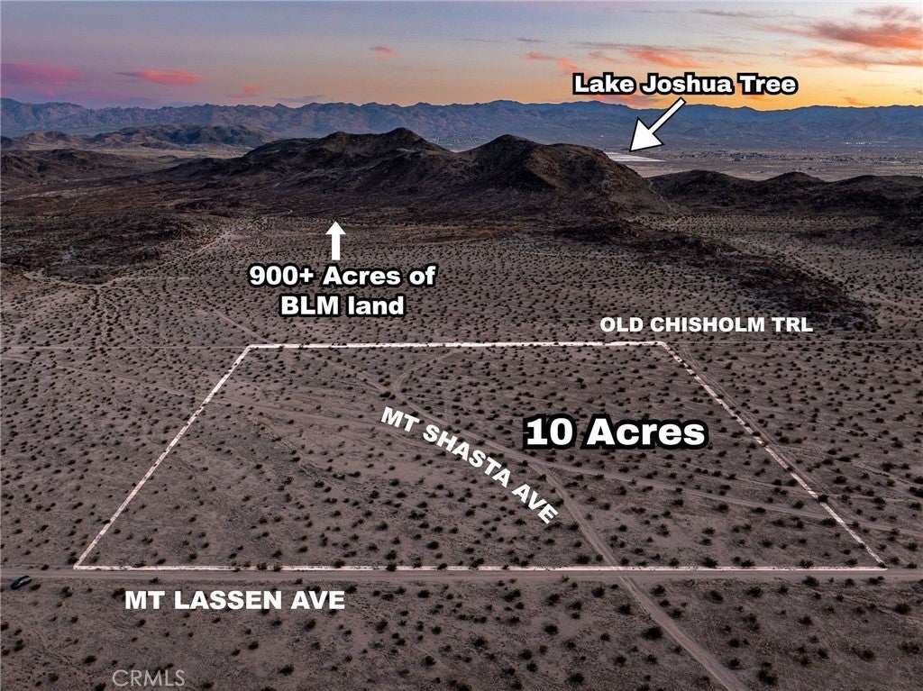 Welcome to Joshua Tree Star Camp! A profitable 10+ acre stargazing retreat for natural land camping (plus cell service!) bordering 900+ acres of public BLM land for hiking & exploration. Just 20 minutes from Joshua Tree National Park, and over $8000 documented profit in just 30 months on AirBnB! Offers due Monday 4/3/26 by 5PM. More income possible with increased advertising. Owner selling to place money into other investments. Per Joshua Tree code, Owner may camp or RV with guests 4 days out of every 30 days. Or build your dream property or two - area zoned JT/RL-5 for 1 residential property per 5 acres on septic, solar, and well or water tank. Temporary structures possible at 120 sq ft or smaller, with no electric or plumbing connected. Seller will finance purchase with $12K-$20K down, $800-$500/month for 48 months or personal loans available from most banks. Call/text for financing info & driving directions to view. Easy access from downtown Joshua Tree: East on Hwy 62 (29 Palms Hwy); North on Sunfair Rd and Coyote Valley Rd, past Lake Joshua Tree; East on Sonora Rd then South on Mt. Shasta Ave to Mt. Lassen Ave. GPS coordinates to North border and center of parcel: 34°12'41.2"N, 116°13'27.1"W. Only 1 block walk to Chisholm Boulder Fields, Space Mountain, and Sunfair Hill’s Trails! Walk over the hills via trails to Lake Joshua Tree & the area fishing lake. Only 20 minutes from Joshua Tree National Park - either the Park Blvd or Oasis entrances! Enjoy your own private park at Joshua Tree Star Camp with 360° sunsets, sunrises & globally recognized Dark Sky stars. Paved roads to 3 miles from the retreat & 20 mins to Indian Cove, Purifoy Outdoor Museum, Integratron, galleries, food, gas & supplies. Ten minutes to 911 services. Joshua Tree Star Camp is off-grid stargazing & camping at its best! Pull-in your vehicle (medium-clearance cars, trucks or RVs are ideal) directly onto your own 10-acre, natural land retreat on hundreds of acres of protected land - with views/hikes for miles & neighbors acres away. Camp/explore by foot or ATV anywhere on the 10 acres. The SW and SE corners of the land open directly onto areas for bouldering and hiking. All land south of Old Chisholm Trail is protected land - over 900 acres of boulders and peaks to explore! Based on recent land sales in the area, this is a well-priced parcel that will sell quickly. View and make your offer ASAP!