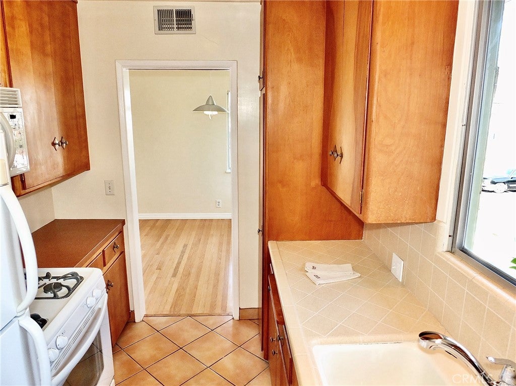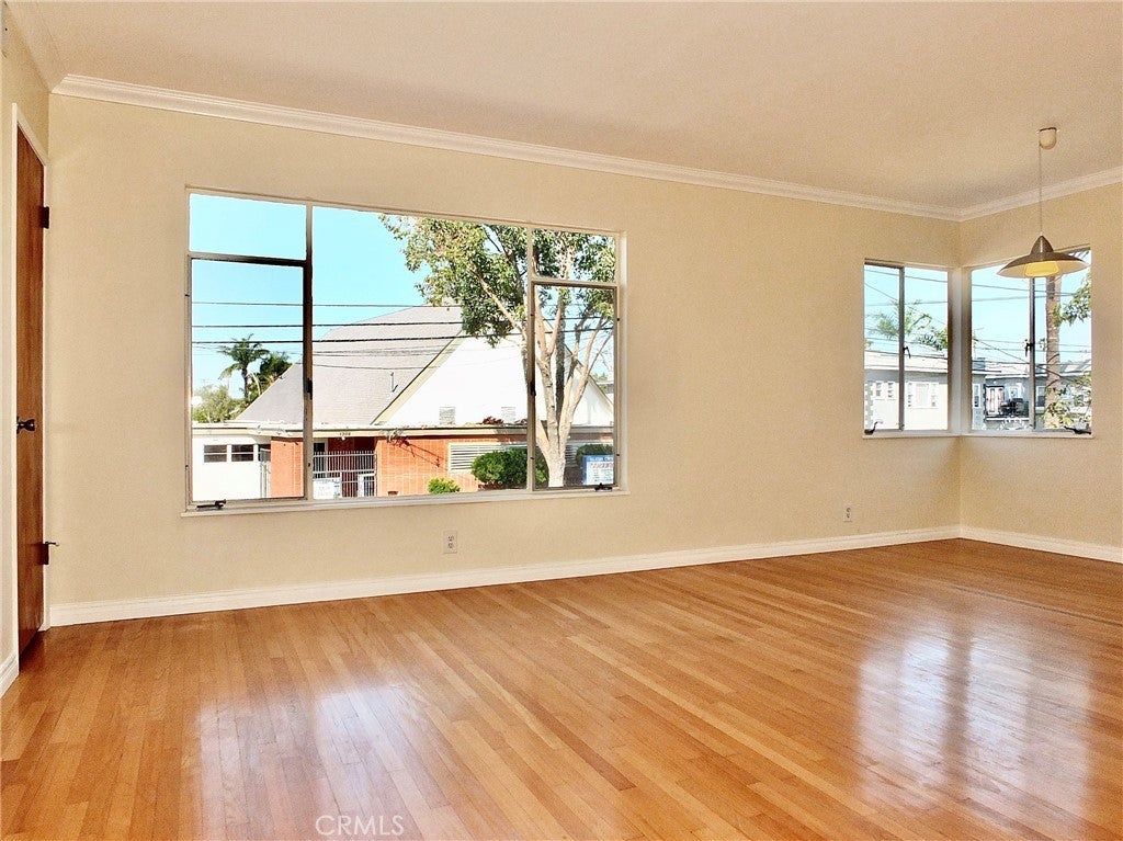 Drop the Mic!! Razor Sharp Large Front Upper Corner Condo with Private Garage and Private Laundry! One bedroom and one bathroom located on the best tree-lined street in Alamitos Beach. Features a highly desirable private one-car garage with remote opener and storage. SECOND PARKING SPACE? Owner may be able to park another car in front of their garage (others have been observed doing this) providing a second parking space but buyer assumes all responsibility. Gorgeous oak hardwood floors throughout this spacious and bright living area. Forced air heating unit installed 1/2024 and ceiling fans. The kitchen includes a gas stove, refrigerator and natural wood cabinetry. Your own private washer/dryer is also in the kitchen or use the common laundry. The bathroom has been updated and tiled. The bedroom is very large with an entire wall of closet space. Only ONE common wall. Tasteful gated Spanish and quarry tile entry shared with only two other units. Garage is on the front of the building immediately under your unit. Access the garage with your remote and make use of the additional storage shelf at the front. Low HOA dues! Included in HOA dues are water (ALL water hot and cold = lower utility bills) and trash. (Second dues are a temporary assessment that sunsets by year end). Located blocks to the beach between downtown Long Beach and Belmont Shore.