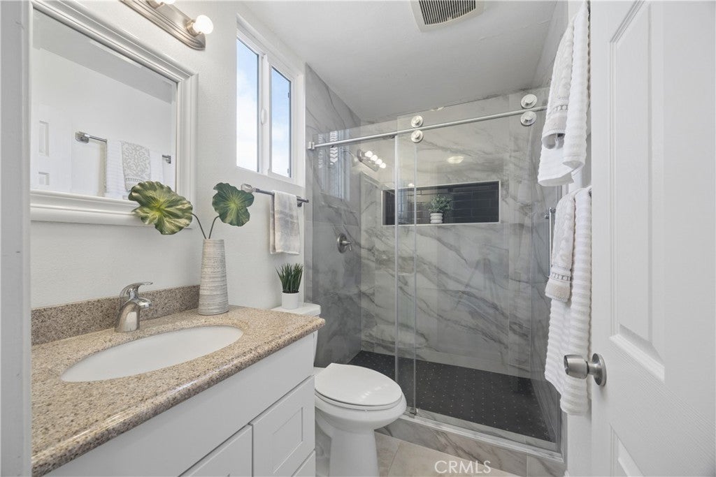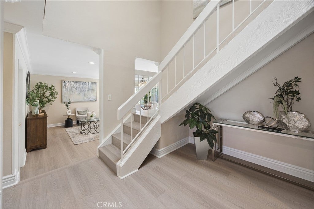 Located in the desirable Greenbrook community of Fountain Valley, this spacious home offers comfort, natural light, and a functional layout in one of the area’s most established neighborhoods. Residents enjoy access to community amenities including a clubhouse, pool, and neighborhood activities throughout the year. The home features approximately 2,710 square feet of living space with 5 bedrooms and 4 bathrooms on a 6,000 square foot lot and is conveniently situated within walking distance to the community pool and clubhouse. Please note: An additional shower was added upstairs in 2012 with a city permit and was recently remodeled. County records list 4 bedrooms, but the home has 5 true bedrooms. The 5th bedroom with a bathroom is permitted as a large bonus bedroom and can be used as the 2nd master suite. Seller can provide permits. Inside, skylights and large windows bring in abundant natural light, creating a bright and open atmosphere throughout the home. The layout includes multiple living areas that provide flexibility for everyday living, entertaining, or working from home. Crown molding and finished upstairs flooring add thoughtful detail to the interior. The kitchen features a garden window overlooking the backyard, providing natural light and a pleasant view while cooking or preparing meals. The primary suite includes a walk-in closet, skylight, and private bathroom, offering a comfortable and quiet retreat. The backyard includes a covered patio, firepit, and several mature fruit trees including avocado, orange, and lemon, creating a welcoming outdoor space for relaxing or gathering with family and friends. Additional features include a 3-car garage, indoor laundry, and mature landscaping. Conveniently located near parks, shopping, dining, and local schools, this home offers a great opportunity to live in the well-known Greenbrook neighborhood.