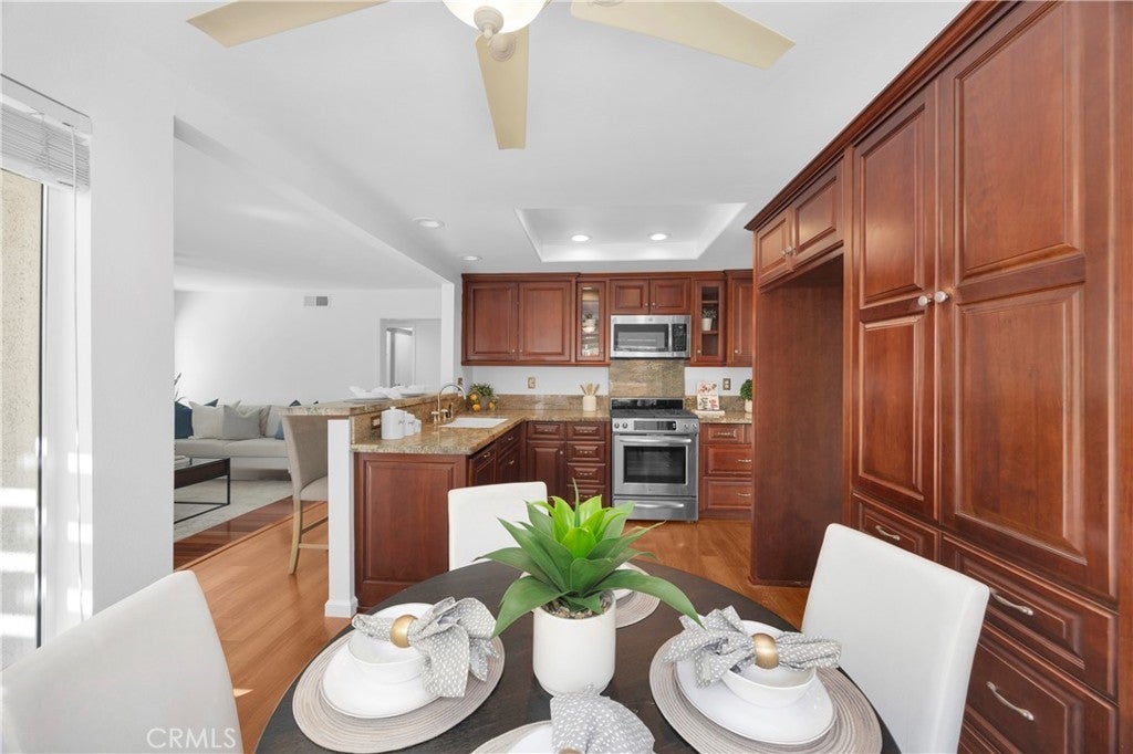 • Interior FeaturesBreakfast Bar, Ceiling Fan(s), Separate/Formal Dining Room, Eat-in Kitchen, Granite Counters, High Ceilings, Recessed Lighting, All Bedrooms Up