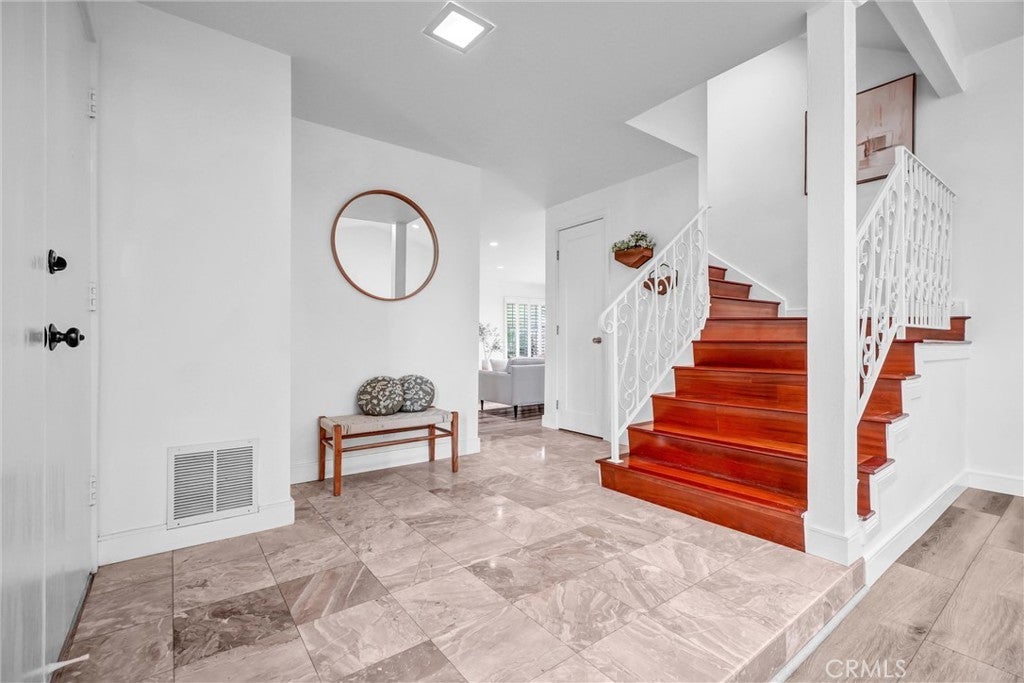LARGEST MODEL IN WESTBLUFF! Set in a truly peaceful and picturesque setting, this exceptional home is nestled in the hills of Fullerton within the exclusive Westbluff community, surrounded by lush mature trees and natural ambiance. This beautiful two-story William Lyon Homes Plan 4 residence offers tremendous curb appeal and reflects true pride of ownership, having been maintained in immaculate condition. Featuring four bedrooms and 2.5 bathrooms, the home welcomes you with a grand double-door entry and a gorgeous marble foyer. Inside, a perfectly flowing floor plan is filled with abundant natural light, creating a bright and airy atmosphere. The upscale living room showcases vaulted ceilings and a skylight, while the formal dining room provides an elegant setting for gatherings. The gorgeously remodeled kitchen features Quartz countertops, upgraded white cabinetry, stainless steel and black appliances, and recessed lighting, and opens to an inviting family room with a cozy fireplace. Lovely laminate flooring enhances the downstairs living areas, while wood flooring extends throughout the upper level. Premium white vinyl dual-pane windows and sliding doors are found throughout the home. All three bathrooms have been fully upgraded and remodeled. The impressive primary suite offers a private retreat, mirrored closet doors, and a luxurious bathroom. The hallway bathroom features a tub and shower enclosure. Additional highlights include scraped ceilings, recessed lighting, and plantation shutters throughout. Beautifully landscaped grounds with a fire pit—perfect for entertaining and enjoying time with family and friends. The home also offers direct access to a two-car garage. Low HOA dues ($150/month) provide access to association pools, spas, tennis courts, playgrounds, and basketball courts. Conveniently located near Los Coyotes Country Club, Westridge Golf Club, and the 105-acre Clark Regional Park, and close to Amerige Heights Town Center, parks, grocery markets, banks, and golf courses. Located within the highly regarded schools of Fern Drive Elementary School, Parks Junior High School, and Sunny Hills High School. IT SHOWS GREAT!