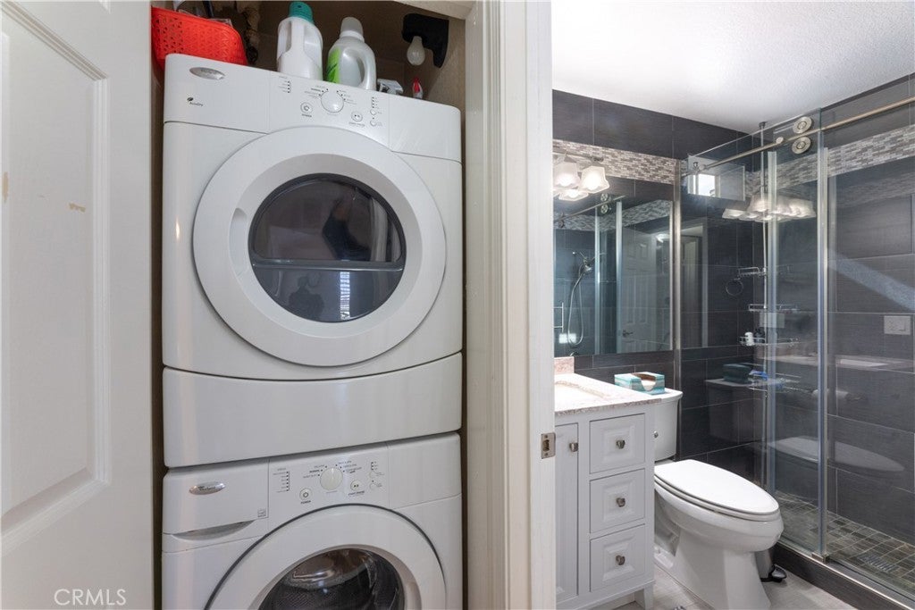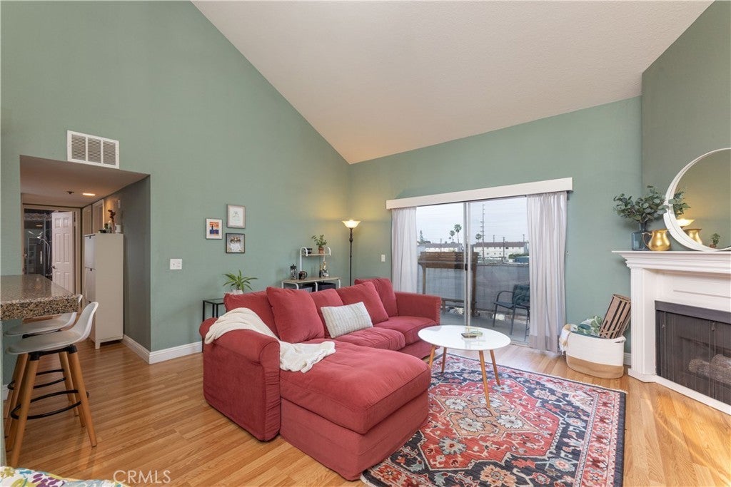 Here's the spot! This upper level condo has all the things on the must-have list: vaulted ceilings, central a/c and heat, in-unit laundry, remodeled bathrooms and kitchen, bright & airy living space, gated garage parking, en-suite primary bedroom/bathroom - PLUS an additional bedroom and bathroom. Even more good stuff: the 1 parking space that's included is right by the lobby door, where you can zip right up the elevator - or take the stairs for your cardio - to the 3rd floor. If you require an entry with no steps, this is perfect for you. Level entry from parking, to elevator, to the unit door. Your journey to unit 304 gives beautiful views of Long Beach, access to the workout room and a glimpse of the sparking pool on the 2nd level. Once at the unit, you're at the corner, so you have only 1 shared wall, and no one above you. A large sliding glass door opens to your private patio, facing west to enjoy the sunset. The well-appointed kitchen is open to the living room, with full sized appliances that will stay in the unit. Plenty of storage and counter space with a cute garden window for the indoor gardener. The living room has a gas fire place for a cozy night in, and the soaring ceilings create a sense of space. This is a living room made for relaxation! The Primary bedroom has a window seat and door to the balcony, large closet with built in storage, high ceilings and an en-suite bathroom. Laundry closet is in the hallway, with washer and dryer installed and will stay in the unit. When you do want to step out of your home sweet home, the neighborhood can't be beat - great walkability with top-rated restaurants around the corner. Close to public transit and well-situated to easily get to any one of the great neighborhoods in Long Beach for shopping, dining and entertainment. The building also has a bike room for secure storage, making it easy to enjoy bikeable LBC. Pets are allowed! Dogs have a max weight of 30 pounds. Welcome home to Mystic Cove!