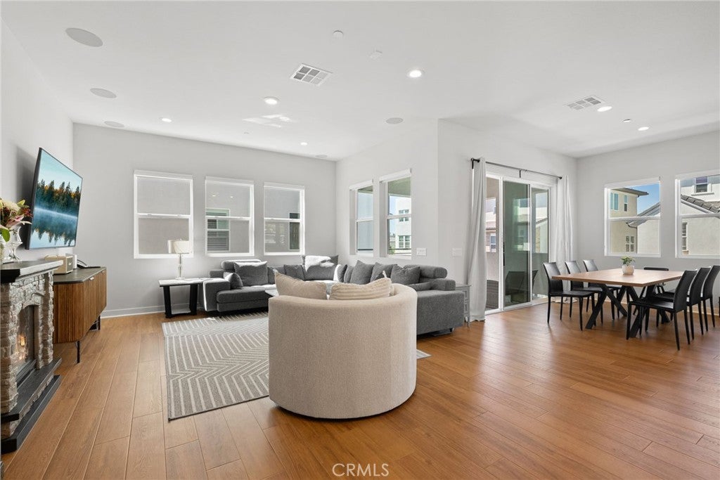 Experience elevated Orange County living in this stunning new Toll Brothers residence located in the highly sought-after The Meadows community of Lake Forest, where modern architecture meets refined luxury. Positioned on a desirable corner lot, this impressive three-story home offers 5 bedrooms, 4 bathrooms, and approximately 3,036 square feet of thoughtfully designed living space. The expansive open-concept layout is filled with natural light and a striking glass staircase that creates a bold architectural statement. Designed for both everyday living and sophisticated entertaining, the chef-inspired gourmet kitchen features ceiling-height cabinetry, marble countertops, a designer backsplash, premium stainless steel appliances, and an oversized center island that anchors the main living space. Large sliding doors create seamless indoor–outdoor California living, opening to a beautifully designed backyard perfect for gatherings and relaxation. The versatile floor plan includes a convenient main-level bedroom and bath, while the upper levels offer spacious secondary bedrooms, flexible space, and a luxurious primary suite retreat featuring a spa-inspired bathroom with dual vanities and a generous walk-in closet. Additional highlights include owned solar panels, energy-efficient systems, and high-end upgrades throughout. Residents enjoy access to the exceptional resort-style amenities of The Meadows, including pools, spas, parks, recreation areas, and social spaces, all just minutes from shopping, dining, and everyday conveniences. A rare opportunity to own a modern, designer-quality home that perfectly blends luxury, lifestyle, and location.