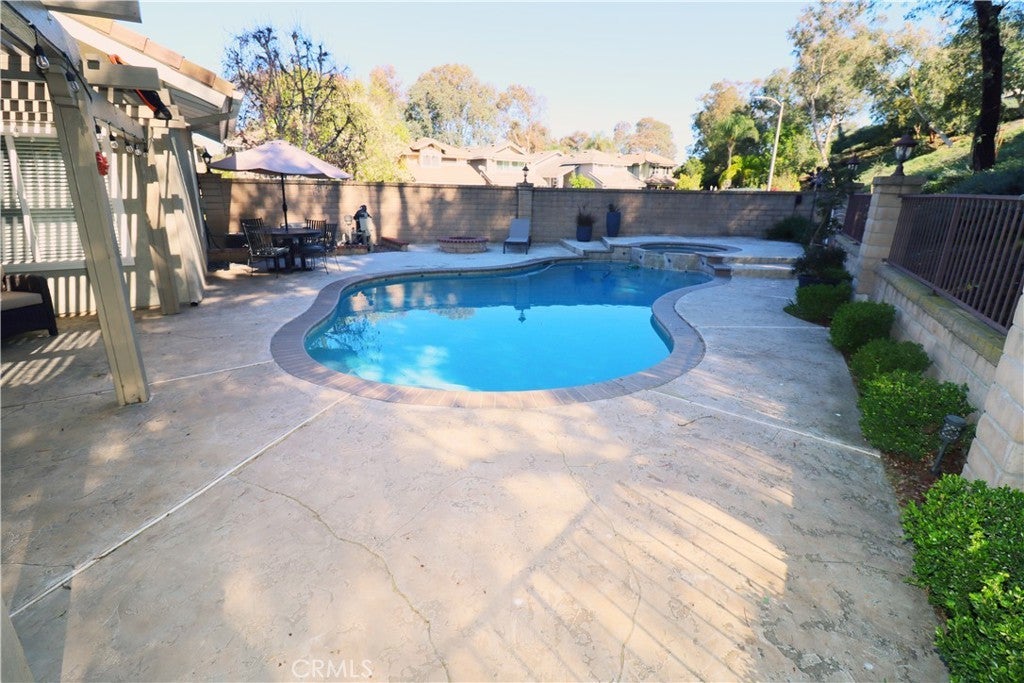 Welcome to this beautifully maintained 3-bedroom, 2.5-bath home with a pool, ideally located on a rare pie-shaped lot in a quiet cul-de-sac. Offering comfort, privacy, and exceptional indoor-outdoor living, this home is perfect for both relaxing and entertaining. Step inside to a dramatic entry with soaring vaulted ceilings and abundant natural light, creating a warm and inviting first impression. The remodeled kitchen flows seamlessly into the living and dining areas, making it ideal for everyday living as well as hosting family and friends. The expansive primary suite is a true retreat, featuring a spacious bedroom and a serene, spa-inspired bathroom designed for comfort and relaxation. With no neighbors behind the home, you can open the blinds and enjoy peaceful hillside views and beautiful trees. Two additional bedrooms share a full bathroom, offering flexible space for family, guests, or a home office. Step outside to your own private backyard oasis, where a sparkling pool sets the stage for sunny afternoons, weekend barbecues, and unforgettable evenings under the stars. With a fantastic layout, a remodeled kitchen, a private pool, added privacy with neighbors on only one side, and the safety of a cul-de-sac location, this home presents a wonderful opportunity to create your next chapter.