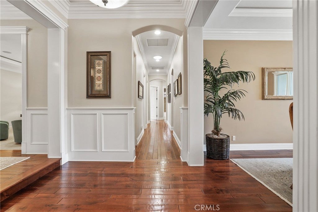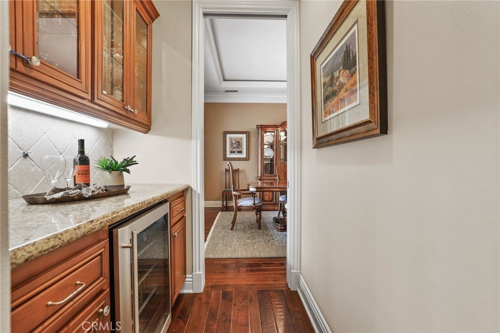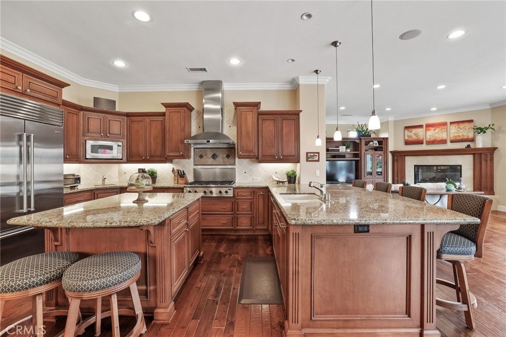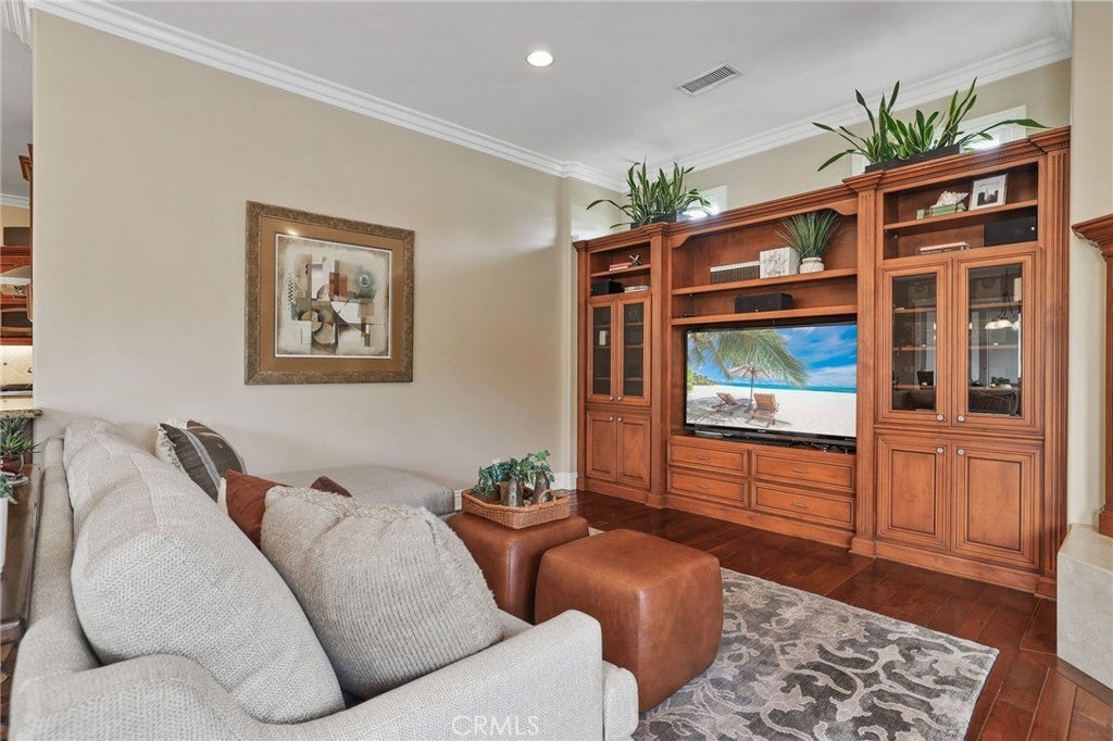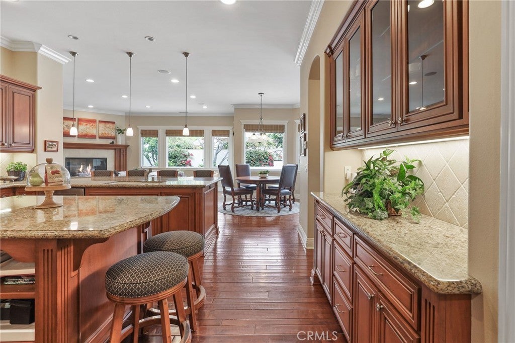 Built in 2004 by renowned builder Eddie Kesky, this exceptional custom residence spans approximately 3,216 square feet and showcases timeless craftsmanship and impeccable pride of ownership throughout. Rich hardwood flooring, detailed millwork, and a light-filled, open-concept design create an inviting and elegant first impression. The chef’s kitchen is thoughtfully designed with a large center island, walk-in pantry, and abundant cabinetry, opening seamlessly to the main living spaces. A dedicated bar with a mini refrigerator, custom built-ins, and a fireplace enhance the home’s warmth and make it ideal for both everyday living and entertaining. The expansive primary suite serves as a private retreat, featuring a spa-inspired bathroom with soaking tub, walk-in shower, and an oversized custom closet. A dedicated home office offers versatility for today’s work-from-home lifestyle. Impeccably maintained and thoughtfully cared for, the home reflects true pride of ownership at every turn. Quality construction highlights include copper plumbing, PVC/ABS sewer lines, and integrated security for added peace of mind. Step outside to a private backyard oasis designed for quintessential Southern California living, complete with custom hardscape, built-in BBQ, spa, and lush, mature landscaping. Completing the home is an attached two-car garage with dedicated staircase to finished attic storage space over garage. A rare opportunity to own a meticulously crafted, turnkey residence in one of Orange County’s most coveted settings.