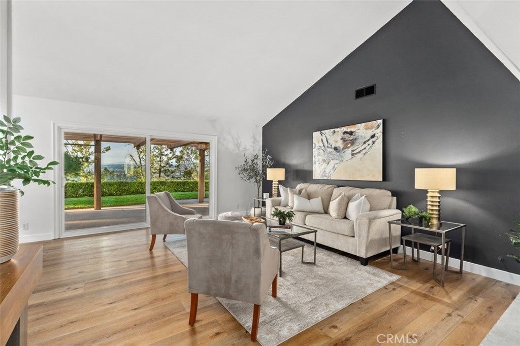 Nestled at the end of a tranquil cul-de-sac in the highly sought after Broadmoor community, this elegant single-story residence perfectly balances modern sophistication with comfortable, functional living. Spanning approximately 2,048 square feet, the home features 4 spacious bedrooms and 2.5 bathrooms, all tied together by newer, seamless vinyl plank flooring and refreshed by a newer heater and AC system for year-round peace of mind. The heart of the home is a beautifully updated kitchen boasting updated cabinetry and sleek black stainless steel appliances, flowing into a charming breakfast nook adorned with designer wallpaper. Throughout the interior, thoughtful touches like custom-painted accent walls and a stylishly appointed kids' bathroom provide a contemporary flair that complements the home’s open layout. However, the true star of this property is the breathtaking panoramic view that serves as a backdrop to daily life; from the kitchen, dining room, family room, and primary suite, you are treated to an ever-changing gallery of majestic mountains and twinkling city lights. On a clear day, the vista stretches all the way to the iconic Downtown Los Angeles skyline, offering a sense of scale and serenity that is truly rare. Complete with an attached 3-car garage, newer water heater, 2 community pools, and situated in a neighborhood known for its pride of ownership, this home offers a premier lifestyle where every sunset feels like a private event. Nearby to top-rated schools plus offering ease of access to local dining, shopping, and entertainment - this home could be the one.