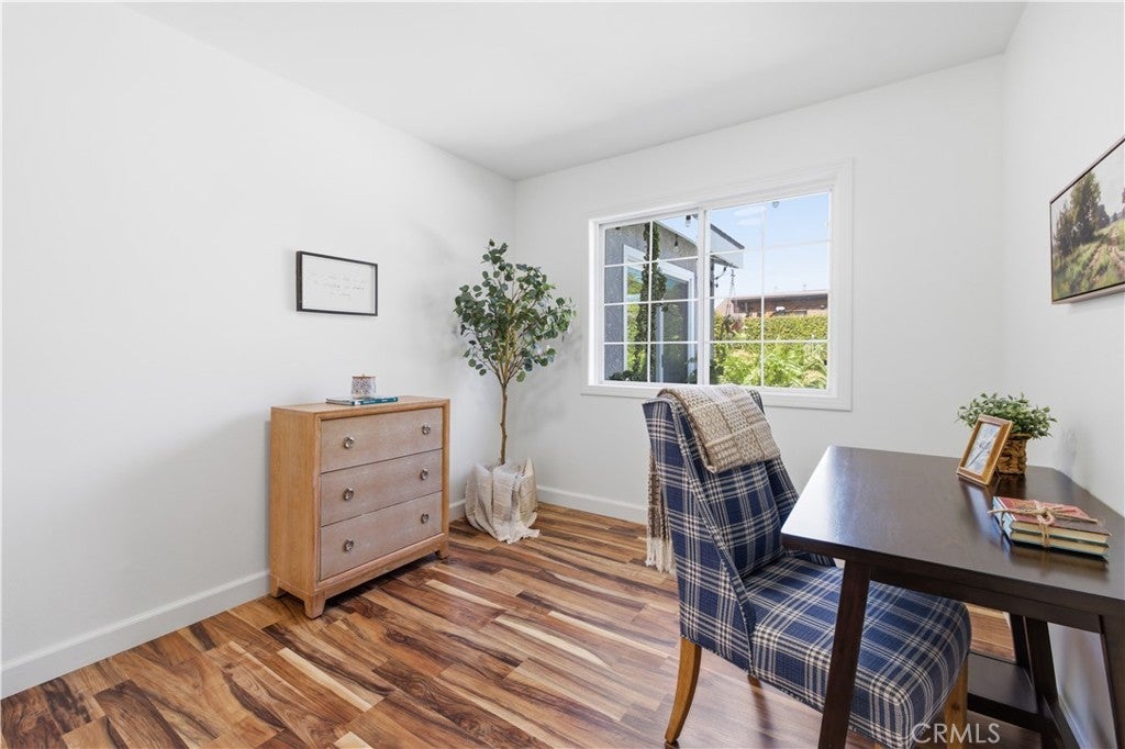 Beautifully upgraded West Garden Grove home featuring 3 bedrooms, 2 bathrooms, and a versatile den/bonus room—currently used as a 4th bedroom. Light, bright, and open with luxury vinyl flooring throughout, this home offers a spacious living room with a cozy fireplace and an updated kitchen that opens seamlessly to the main living area. Sliding doors lead to the backyard with a patio and pool, creating an ideal indoor-outdoor flow. The bonus room also features direct backyard access, perfect for guests, a home office, or additional living space. Additional highlights include central air conditioning, a newer roof, fresh interior paint, and updates throughout. Conveniently located near highly rated schools, shopping, dining, and freeway access.