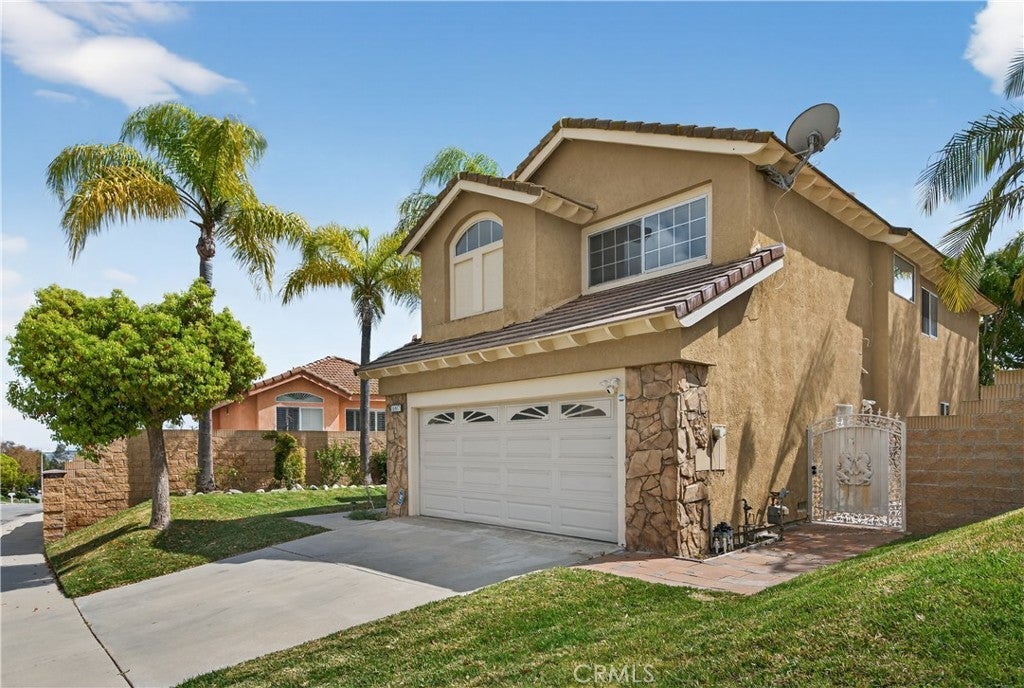 Located in a quiet neighborhood of Chino Hills, this home offers a bright and open floor plan with soaring cathedral ceilings in the living room and formal dining area, creating a spacious atmosphere. The home features three bedrooms upstairs, including a generously sized primary suite with abundant natural light. The second floor is finished with laminate flooring for a clean and low-maintenance living space. The main level showcases travertine flooring, adding a timeless touch. The remodeled kitchen is upgraded with granite countertops, offering both style and functionality. The home includes two full bathrooms and one half bathroom, thoughtfully laid out. The laundry area is conveniently located near the garage entrance. Large windows throughout bring in natural light, enhancing the overall living environment. The property is enclosed with block fencing. Both the front and backyard are professionally landscaped, providing well-maintained outdoor spaces. The backyard offers a comfortable outdoor setting, ideal for outdoor dining, gatherings, or simply enjoying a private space to unwind. Conveniently located near major freeways, shopping, parks, and restaurants, and within the Chino Valley Unified School District, this home offers a great opportunity for comfortable living.