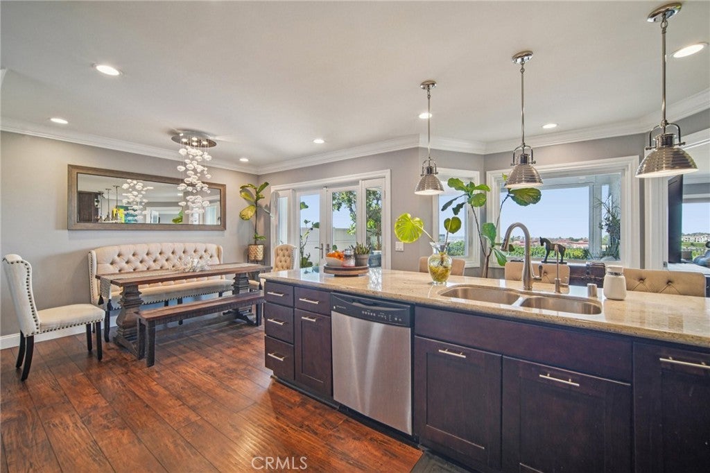 Positioned in the highly desirable Sterling Heights community of Lake Forest, this turn-key 3-bedroom, 2.5-bathroom home captures sweeping panoramic views of the surrounding mountains, Orange County cityscape, and even the ocean on clear days. This upgraded residence blends comfort, functionality, and modern design, making it a standout opportunity in today’s market. Extensive interior improvements enhance both form and function, including custom crown molding, wood veneer flooring, and a newer HVAC system with updated ductwork, plumbing, and electrical. A built-in surround sound system further elevates the home’s entertainment appeal. The open-concept floor plan is filled with abundant natural light, creating a bright and inviting living environment throughout. The expanded family room just off the kitchen offers versatile living space, ideal for a media room, music room, or additional entertaining area. Step outside to the covered, open-air patio—perfectly positioned for indoor-outdoor living and hosting gatherings year-round. All bathrooms have been tastefully remodeled with high-end finishes, delivering a clean, contemporary feel. The front and rear yards are designed for low-maintenance living with artificial turf, while the private backyard spa provides the perfect setting to relax and take in city lights and star-filled skies. Located within the highly regarded Saddleback Valley Unified School District and just minutes from Lake Forest Sports Park, shopping, dining, and major commuter routes, this home offers an exceptional blend of lifestyle, location, and long-term value. No Mello Roos either.