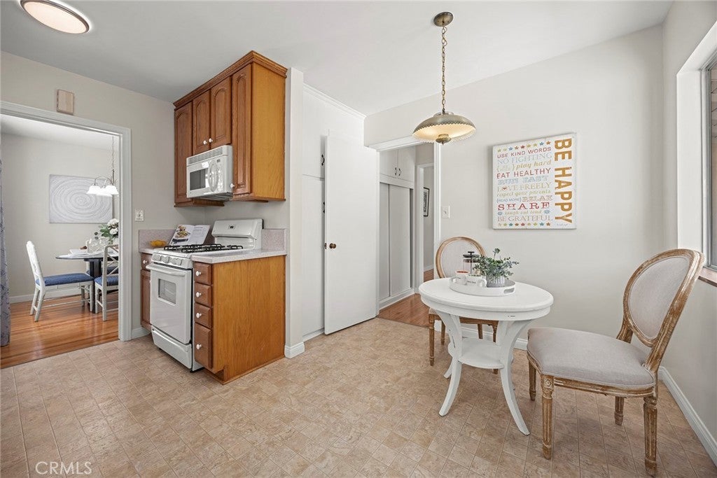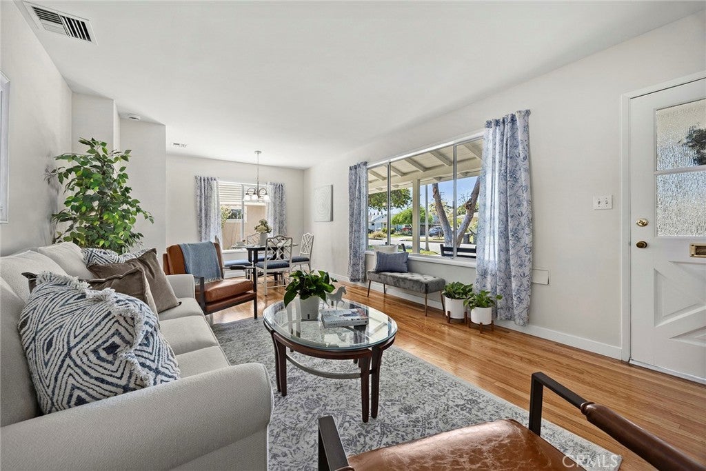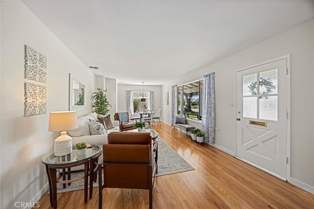 Some homes just make you smile, bursting with charm and classic 1950’s details, welcome home to 536 N. Hale Avenue, situated in the coveted Acacia Elementary and Troy High School districts, now offered to the market for the first time in almost 50 years! A green lawn and two mature front yard trees, compliment the iconic front porch which leads to the newly painted front door. Step inside to a refreshed and move in ready interior with stunning original hardwood floors just refinished and gleaming, found throughout the living areas, hallway and bedrooms. New interior paint and baseboards further enhance a fresh and move-in ready aesthetic. The living and dining rooms flow together seamlessly and enjoy ample natural light with multiple windows. The eat in kitchen is fresh and tidy with oak cabinetry, Formica counters and includes a gas range, microwave and refrigerator. A sunny breakfast nook overlooks the backyard. Two comfortably sized bedrooms sit on the north side of the home, each with wood floors and functional closet space and newer dual pane windows. Between the bedrooms a full bathroom is found with tile tub/shower combo. The third bedroom features a sliding door to the backyard, functional closet space and a ½ bathroom. The backyard is a horticultural paradise with many fruit bearing trees, citrus and avocado among them. A long driveway (with room for multiple cars) leads to an enlarged two-car garage. The home also enjoys central heating and air! Don’t miss this rare offering in an ideal neighborhood within easy distance of schools, shopping and fwys.
