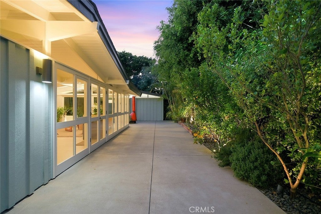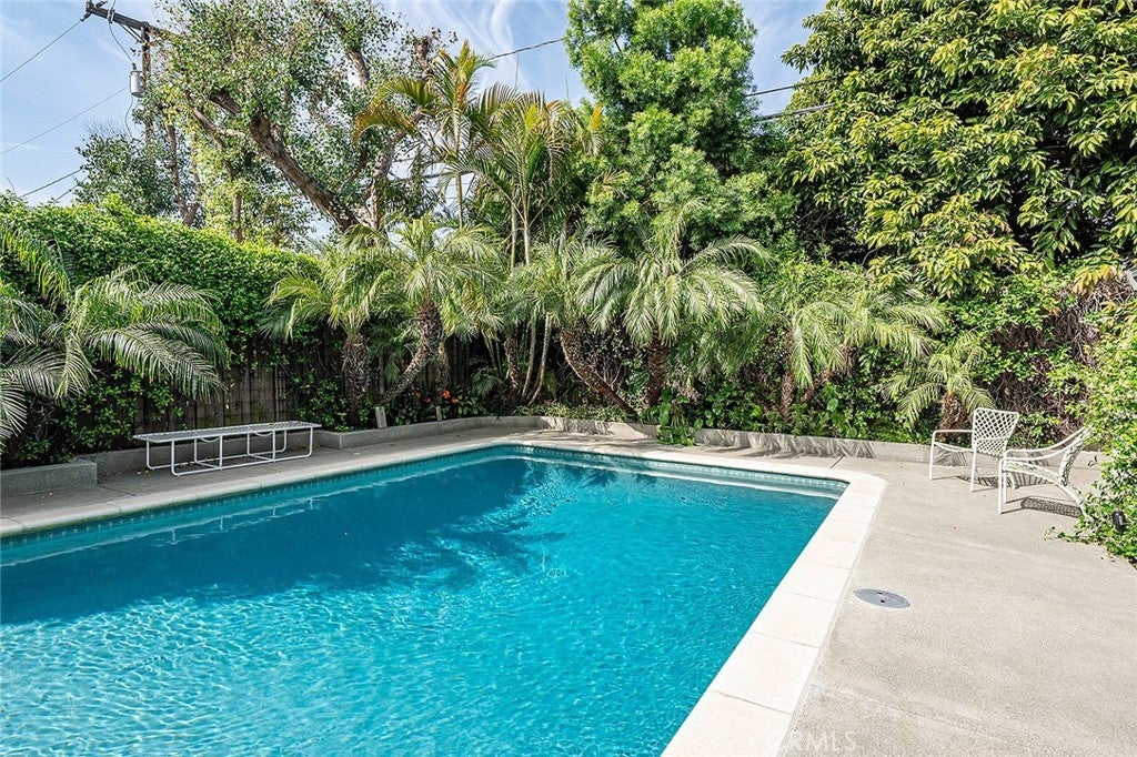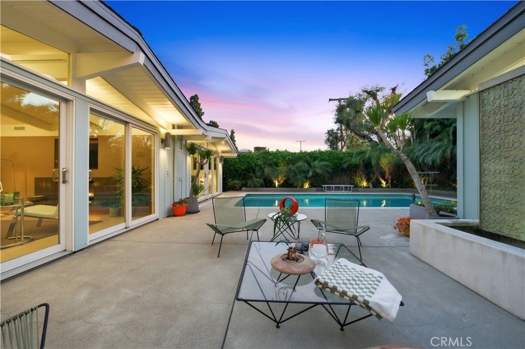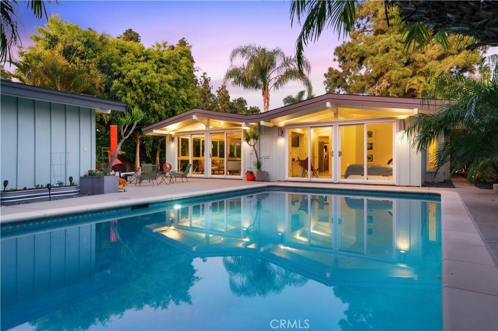 Tucked away in a quiet interior location in the heart of the Rancho Estates, this exceptional Cliff May pool property is an oasis of serenity and modernity. Thoughtfully expanded by the current owners, the residence now spans nearly 1,700 square feet and features a spacious modern kitchen, upgraded bathrooms (with radiant floor heating in the primary bathroom), an enlarged living room with newer fireplace, updated flooring throughout, enhanced HVAC, and numerous additional improvements. The property is beautifully configured for entertainment and relaxation, with a privacy fence along the front of the property with automated driveway gate, abundant outdoor patio space, a detached garage with potential for either car parking or an ADU conversion, a large swimming pool, and lush tropical landscaping. Combining the timeless appeal of Cliff May’s iconic mid-century modern design with expanded living space, functional upgrades, and seamless indoor-outdoor flow, this property presents a rare and exceptional opportunity to experience the very best of Rancho Estates living.