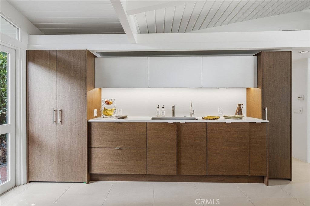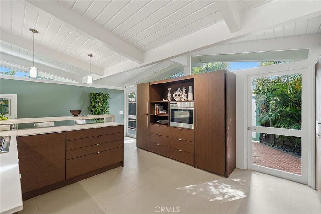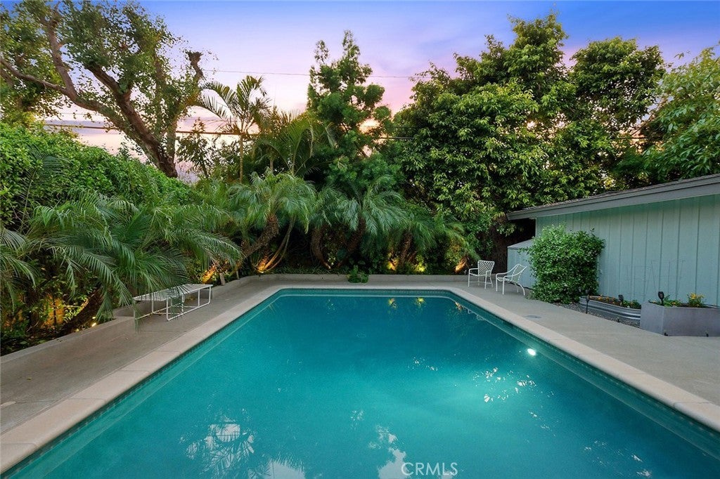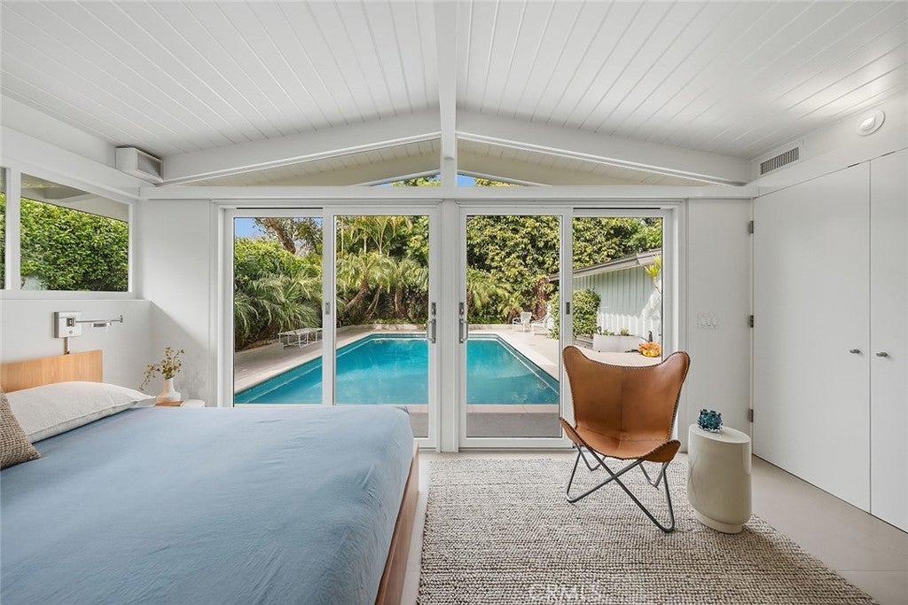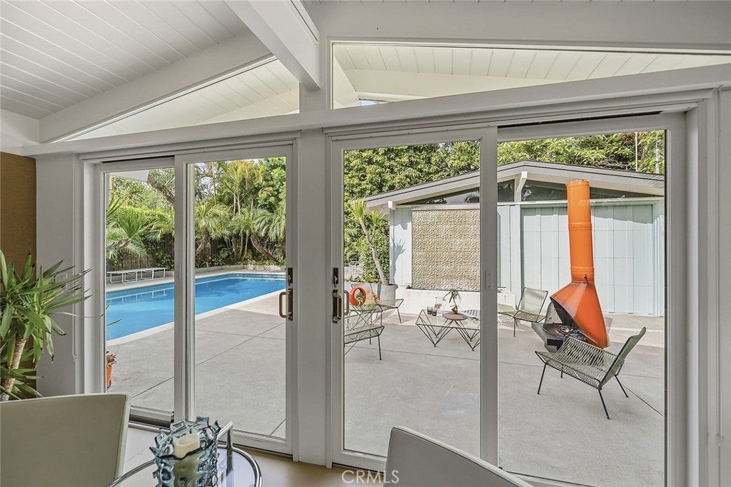 Tucked away in a quiet interior location in the heart of the Rancho Estates, this exceptional Cliff May pool property is an oasis of serenity and modernity. Thoughtfully expanded by the current owners, the residence now spans nearly 1,700 square feet and features a spacious modern kitchen, upgraded bathrooms (with radiant floor heating in the primary bathroom), an enlarged living room with newer fireplace, updated flooring throughout, enhanced HVAC, and numerous additional improvements. The property is beautifully configured for entertainment and relaxation, with a privacy fence along the front of the property with automated driveway gate, abundant outdoor patio space, a detached garage with potential for either car parking or an ADU conversion, a large swimming pool, and lush tropical landscaping. Combining the timeless appeal of Cliff May’s iconic mid-century modern design with expanded living space, functional upgrades, and seamless indoor-outdoor flow, this property presents a rare and exceptional opportunity to experience the very best of Rancho Estates living.