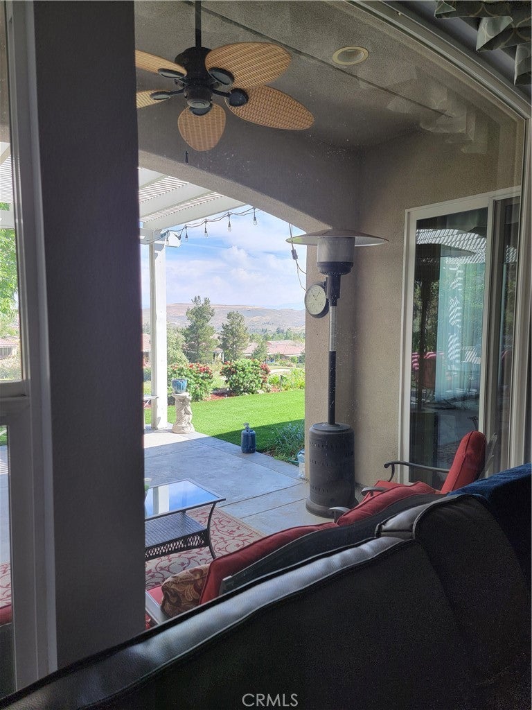 Come see this home sitting alongside the first fairway of Glen Ivy Golf Course at Trilogy designed by Ted Robinson. Exceptional views of golf course and hills and Mountains nearby. This is Corona's best 55+ golf course Community. First tee box, Clubhouse, and Pro-Shop within 300 yards walk or take your golf cart. Go out back and enjoy the views or barbeque in the evening or just relax and enjoy the views. Aluma wood patio and no maintenance to speak of, with HOA covering the front yard maintenance. This very popular floor plan boasts of 2 bedrooms and an office or easily a 3rd bedroom. Open plan with separate dining room and laundry rooms. Large Kitchen opening to living room area with great outside views and a cozy fireplace. Stone countertops throughout this home. Wood like water-proof laminate floors throughout the home. Central Air less than 3 years old and water heater less than 2 years old. Several Ceiling fans. This community offers so many activities at the Clubhouse Restaurant and the Lodge. Including resort style pool outdoor and an indoor as well, very nice exercise room, Play Pickleball, Tennis, Large Spa and Pool room with activities going on all the time. Home is very well maintained. Large 2 car garage that actually fits 2 cars. and golf carts welcome in the community and on the course. Front yard landscaping is paid for by the HOA.