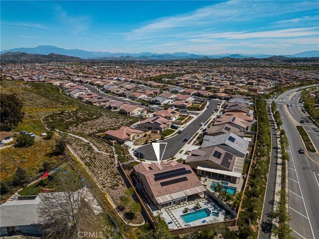 This home sits on a premium lot in the highly desirable Master-Planned Community of Audie Murphy Ranch. This Single-Story, 4 Beds & 3 Baths home was built in 2023 & has over $400,000 in premium upgrades: Front security screen; Enclosed patio in back; Water filtration system in kitchen, 2 New Tesla batteries. The home is also pre-wired for a 220 volt fast charging EV. This home is thoughtfully designed with luxury finishes & flexible living spaces. The entry leads into a spacious open concept great room, ideal for entertaining & everyday living. The Chefs kitchen is appointed with a double oven, 5 burner stove, & pot filler, pendant lighting & is open to the large eating area. The generously sized dining room provides versatility & overlooks a covered courtyard, perfect for indoor & outdoor flow. The custom pool features Pebble Tech, fountains, stone backsplash & color changing lights with a large spa. All this located inside the award winning schools, /recreation center, swimming pool, spa, sports courts, hiking trails, & more.