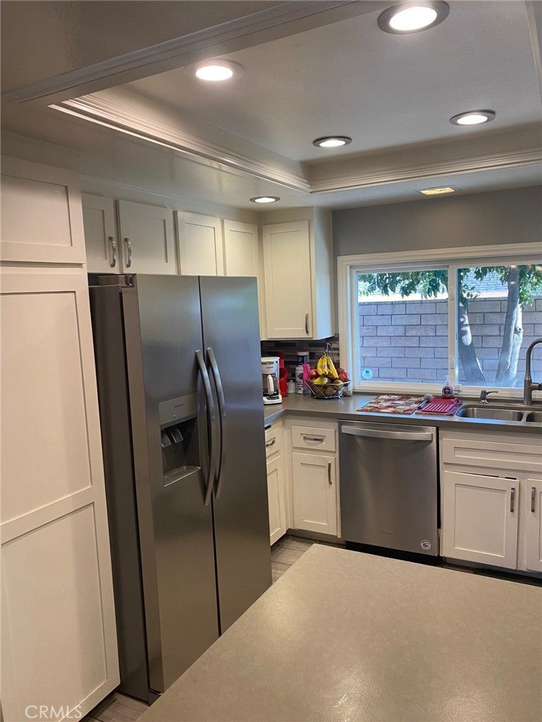 Nestled at the end of a quiet cul-de-sac, this 3-bedroom, 2-bathroom home offers 1,330 sq. ft. of thoughtfully designed living space, combining privacy, comfort, and modern features. A gated front yard welcomes you with a detached garage and a spacious cement patio—ideal for relaxing or entertaining. Inside, you’ll find a bright, functional layout featuring a stylish kitchen with stainless steel appliances and ample cabinetry. The master suite is a true retreat, boasting a large walk-in shower, an extra-large vanity with dual sinks, and sliding glass doors that open directly to a serene, private backyard sitting area. Two additional bedrooms and a full bathroom provide versatility for guests, a home office space, or a growing household. Whether you're enjoying the front patio or unwinding in the quiet backyard, this home is a peaceful haven with plenty of charm. Don't miss out on this unique opportunity—schedule your private tour today!