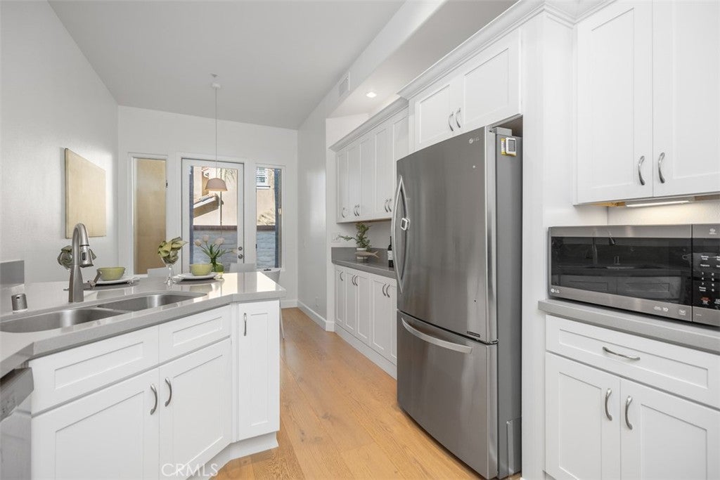 Who says you can't have it all? Rarely does a home at this price point offer as much scale and versatility in Tustin Ranch. Tucked away in the gated community of Corte Villa, this end-unit, ~2420sf home feels remarkably private and open with its high ceilings, big windows, and bright skylight. The layout is incredibly functional, featuring 3 spacious bedrooms, 2.5 bathrooms plus a flexible downstairs office/den that’s perfect for anyone working from home or in need of a private retreat. The entire interior has been refreshed with new flooring, new paint and beautifully remodeled bathrooms that offer a clean, modern aesthetic. You’ll love the updated kitchen with white shaker style soft close cabinetry, stainless steel appliances and is open to a breakfast nook ideal for everyday dining. Both the breakfast nook and living room provide access to the wrap around patio with low maintenance tile and landscaping. Upstairs is the spacious primary suite featuring double closets (one of which is walk-in) and oversized, newly remodeled bathroom with both a walk-in shower and separate tub. The two secondary bedrooms are jack-and-jill, sharing their own remodeled bathroom with double vanities. In addition, there is an upstairs tech nook where young ones can do schoolwork without having to repurpose a bedroom! Residents of Corte Villa have access to a community pool, spa, and tennis court and benefit from all the luxuries and conveniences Tustin Ranch has to offer. This is a move-in-ready opportunity to live in a secure, well-maintained community just minutes from top rated public schools, shopping, employment centers and freeways.
