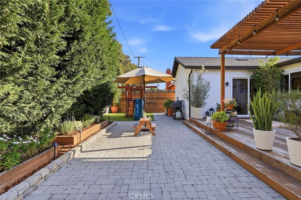 It's rare to find such a stunning move-in-ready home this close to the 405 in this price range! Check out this comfortable home that has the convenience of single-level living, along with beautifully updated indoor and outdoor spaces designed for easy living and entertaining. Step inside to an inviting open-concept great room that flows seamlessly toward a smartly designed backyard, complete with an impressive redwood deck with patio cover that perfectly complements the custom front fencing. Both the newly landscaped and hardscaped front yard and the gorgeous backyard create warm, welcoming outdoor spaces ideal for relaxing or hosting guests. Pavers in the backyard and on the front driveway match the pavers all around the walkways of the house giving the outdoor area a cohesive, balanced esthetic. Back inside, you’ll find 4 generously sized bedrooms, plus a 5th room currently used as an office just off the kitchen — perfect for working from home, a playroom, or flex space. All 3 bathrooms are full baths, offering convenience and comfort for family and guests alike. The spacious primary suite is a true retreat, with direct access to the backyard deck and yard, creating the perfect indoor-outdoor connection. An attached front-facing garage, additional driveway parking, and a gated automatic entry add both function and security. This is the one you’ve been waiting for — don’t miss your chance to make this exceptional Gardena home yours before someone else does!
