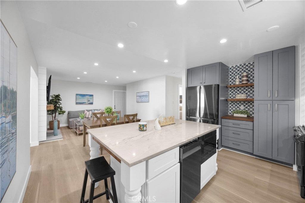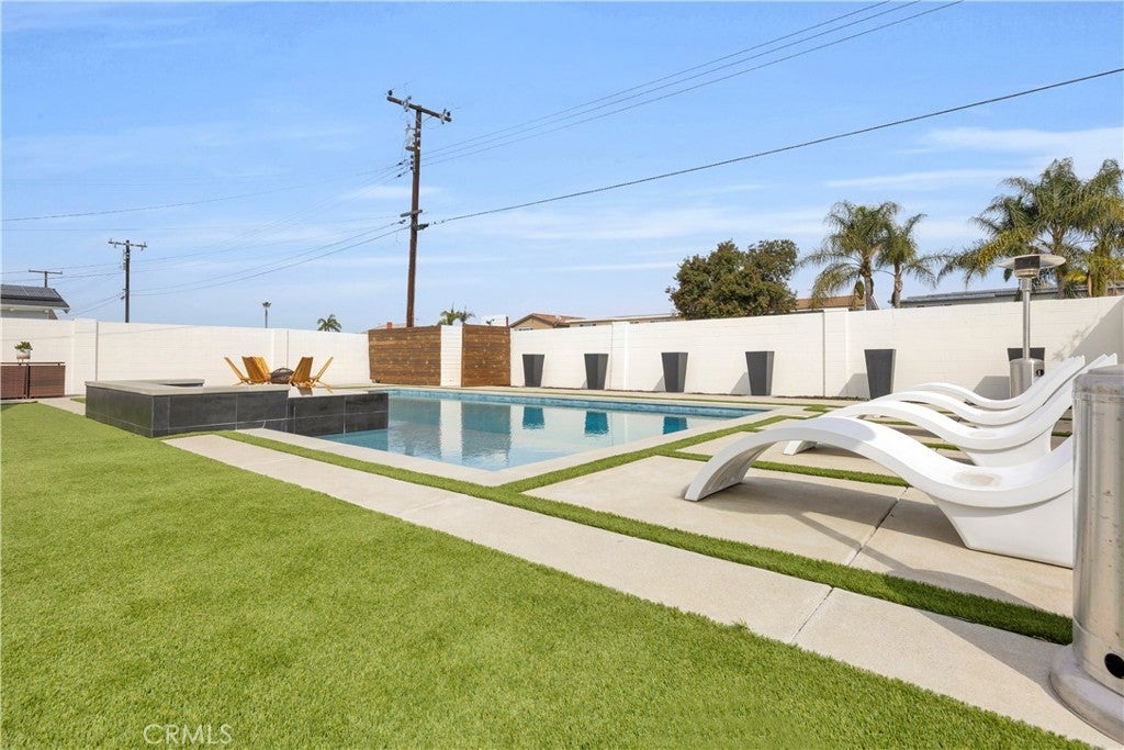 The Ultimate “Staycation” Retreat In Cypress. Expanded, Remodeled, And Ready To Impress. From The Moment You Arrive, The Bold Black And White Exterior, Fresh Landscaping, And Brand New High End Roof With Sleek Metal Accents Create Standout Curb Appeal That Sets This Home Apart. Step Through The Solid Wood Front Door Into A Bright Open Concept Floor Plan With Sightlines That Draw You Straight To The Backyard, Creating An Immediate Wow Factor. The Great Room Is Light And Inviting With Recessed Lighting Throughout, Dual Pane Windows, New Luxury Vinyl Plank Flooring Throughout, And A Striking Fireplace, All Flowing Seamlessly Into The Chef’s Kitchen Featuring Quartzite Natural Stone Countertops, A High End Gas Range, Stainless Steel Appliances, And Custom Cabinetry Designed For Both Style And Function. The Expanded Layout Offers A Rare 4 Bedroom, 3 Bathroom Configuration With Approximately 1,500 Square Feet, Including The Primary Bedroom With High Ceilings That Bring In Natural Light And Create A More Open Feel. All Bathrooms Have Been Fully Remodeled With Designer Tile Showers, Tile Flooring, And Modern Finishes. Step Outside And Everything Changes. The Backyard Is A True $150,000 Private Resort Featuring A Show Stopping Pool With Dual Baja Shelves, Built In Umbrella Stands, And An Infinity Edge Spa Designed For Next Level Entertaining And Everyday Enjoyment. A Standout Feature Is The Garage To Backyard Connection, Creating A Seamless Indoor Outdoor Flex Space Perfect For A Game Room, Gym, Or Ultimate Entertaining Setup. Located Just Minutes From Seal Beach, Parks, Golf, Shopping, Top Rated Schools, And Major Freeways Connecting Los Angeles And Orange County. Turnkey and Highly Upgraded.