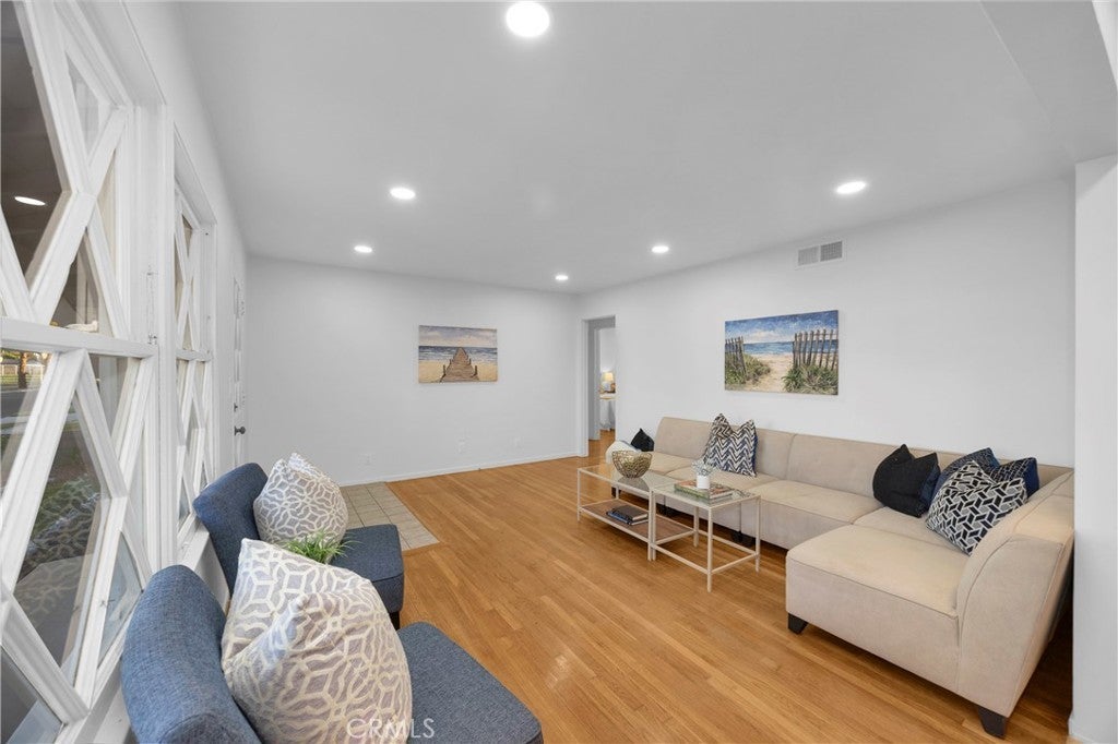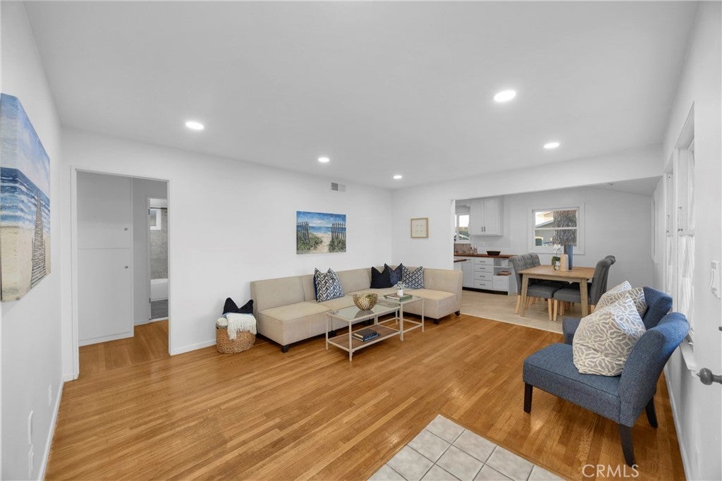 Welcome to 3691 Cortner Avenue, a standout 7500 square foot corner-lot home in a desirable Long Beach neighborhood (adjoins Los Alamitos and Eldorado Estates). From the moment you arrive, the pride of ownership is obvious with clean curb appeal, mature trees, and a spacious wraparound feel that only a corner lot can provide. Step inside to a bright, refreshed interior featuring fresh paint, recessed lighting throughout, and a layout designed for both everyday living and effortless entertaining. The beautifully updated kitchen opens seamlessly into the main living areas, creating a functional open flow that buyers are looking for right now. The expansive Family/Bonus room is a true highlight, featuring stunning vaulted wood-beam ceilings, an impressive Rock Fireplace, and an inviting space that feels both warm and elevated. The home offers three bedrooms and two bathrooms, all thoughtfully laid out across approximately 1,600 square feet. Additional upgrades include new luxury vinyl plank flooring, clean finishes throughout, and a move-in ready condition that makes this home an easy yes. The garage is dialed in and offers flexibility for parking, storage, a home gym, or workshop setup. Huge backyard with an organized and productive home garden! Located just minutes from parks, dining, shopping, and the coast, this home delivers the ideal blend of comfort, location, and lifestyle. Corner lot homes with this level of upgrades, character, and usable space do not come up often—this is one you do not want to miss. Many neighborhood kids have transferred to Los Alamitos Schools which are very close!