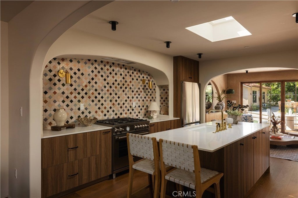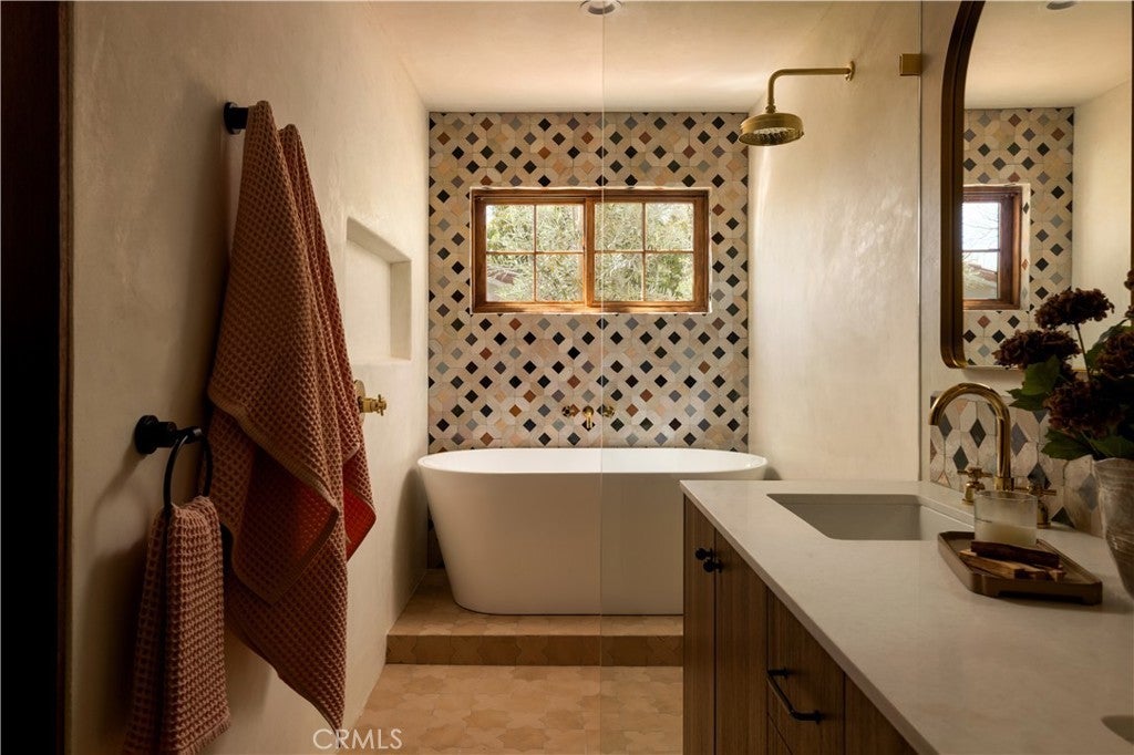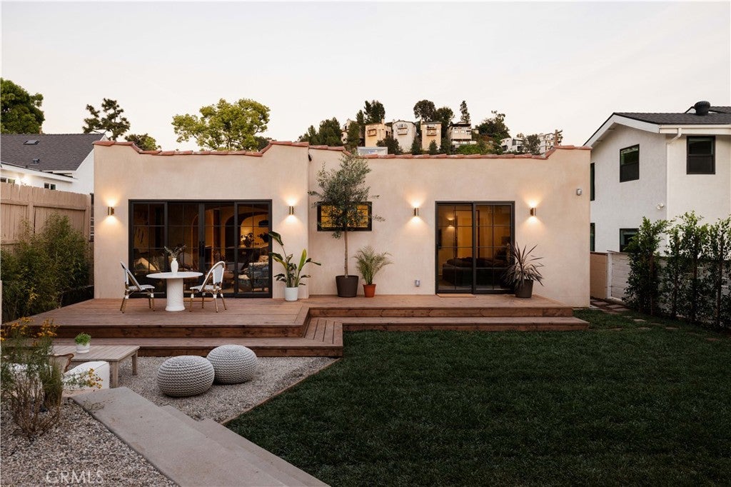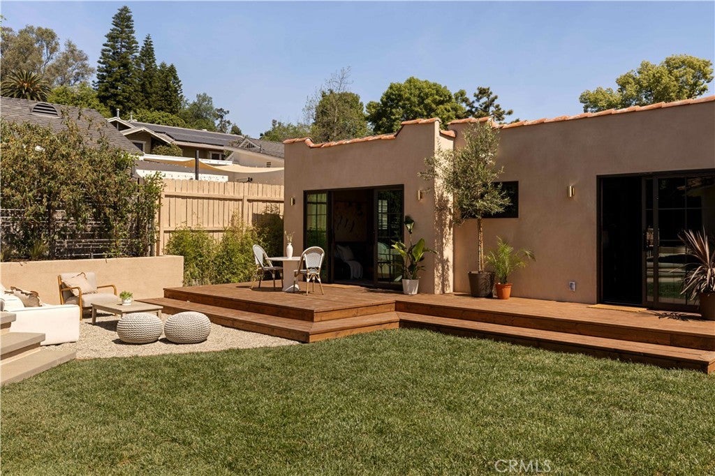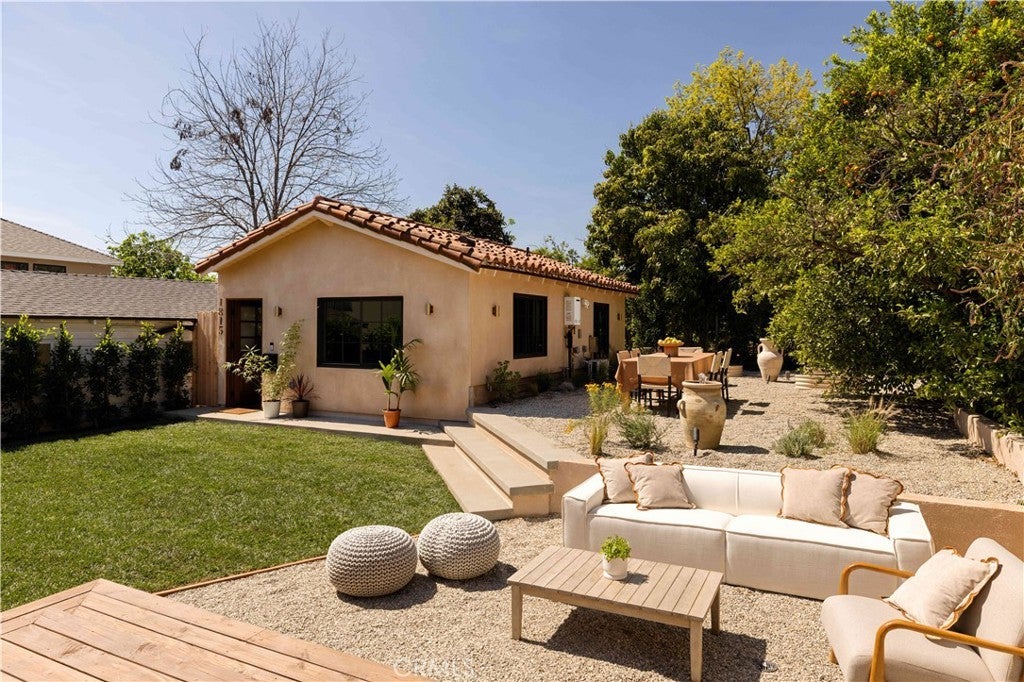 Introducing Hacienda 55, a thoughtfully designed Spanish compound in the heart of Highland Park, masterfully curated by the team at Bungalowe. Blending timeless character with modern livability, this 3-bedroom, 3-bath main residence plus a full 1- bedroom, 1-bath ADU is truly a work of art. From the moment you enter, you’re greeted by a warm and inviting sitting room that flows seamlessly into a formal dining space and into the heart of the home, a stunning chef’s kitchen anchored by a large island, handcrafted tile backsplash, skylight above, and a beautifully integrated wine area. Beyond the kitchen, a spacious family room with rich plaster walls and curated lighting creates the perfect setting for both everyday living and entertaining, with direct access to a private deck that extends the living space outdoors. The layout is both functional and refined: featuring well-appointed secondary bedrooms, including one with its own en-suite bath, and a beautifully appointed primary suite. The primary bedroom offers a peaceful retreat, complemented by a spa-like ensuite featuring handcrafted tile work, a double vanity, walk-in shower, and an oversized walk-in closet. Step outside to a private, multi-level backyard retreat. The lower level offers a lush grassy area, while the upper level is designed for entertaining, complete with garden elements, tranquil fountains, and space to gather under the Socal sky. The detached ADU mirrors the design integrity of the main home, featuring vaulted ceilings, a spacious bedroom and bathroom, and a beautifully finished kitchen with handcrafted tile, making it ideal for guests or a private workspace. Ideally located just moments from York Boulevard, Hacienda 55 offers easy access to some of Highland Park’s best dining, coffee, and local favorites. Every inch of Hacienda 55 has been intentionally designed, blending organic textures, architectural arches, and custom finishes throughout. A rare offering that feels more like a curated living experience than a home, this is Highland Park living at its finest.
