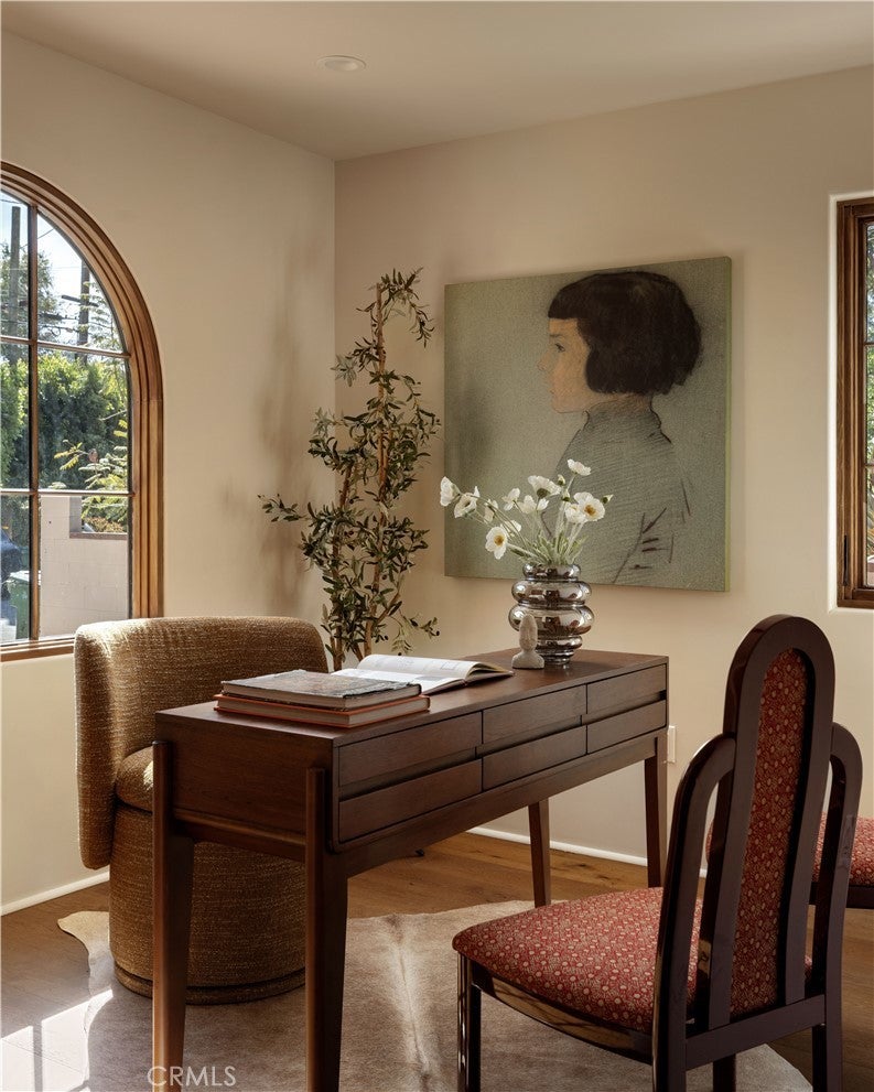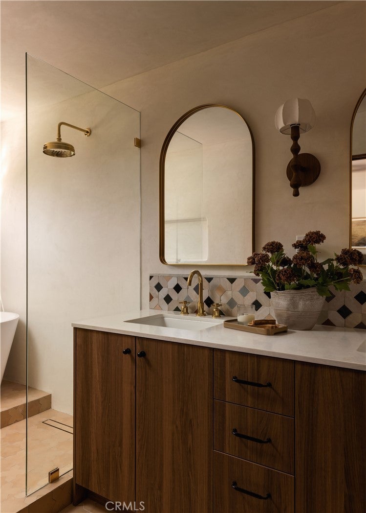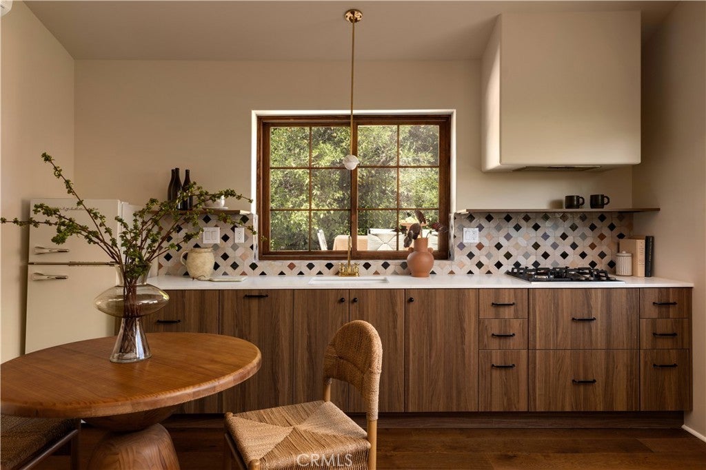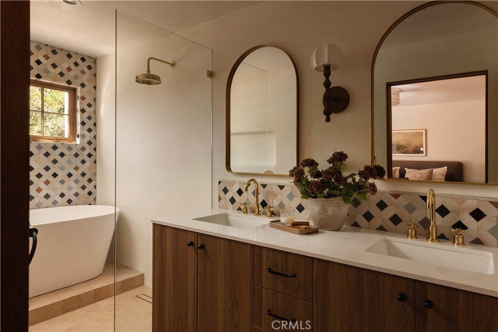 Introducing Hacienda 55, a thoughtfully designed Spanish compound in the heart of Highland Park, masterfully curated by the team at Bungalowe. Blending timeless character with modern livability, this 3-bedroom, 3-bath main residence plus a full 1- bedroom, 1-bath ADU is truly a work of art. From the moment you enter, you’re greeted by a warm and inviting sitting room that flows seamlessly into a formal dining space and into the heart of the home, a stunning chef’s kitchen anchored by a large island, handcrafted tile backsplash, skylight above, and a beautifully integrated wine area. Beyond the kitchen, a spacious family room with rich plaster walls and curated lighting creates the perfect setting for both everyday living and entertaining, with direct access to a private deck that extends the living space outdoors. The layout is both functional and refined: featuring well-appointed secondary bedrooms, including one with its own en-suite bath, and a beautifully appointed primary suite. The primary bedroom offers a peaceful retreat, complemented by a spa-like ensuite featuring handcrafted tile work, a double vanity, walk-in shower, and an oversized walk-in closet. Step outside to a private, multi-level backyard retreat. The lower level offers a lush grassy area, while the upper level is designed for entertaining, complete with garden elements, tranquil fountains, and space to gather under the Socal sky. The detached ADU mirrors the design integrity of the main home, featuring vaulted ceilings, a spacious bedroom and bathroom, and a beautifully finished kitchen with handcrafted tile, making it ideal for guests or a private workspace. Ideally located just moments from York Boulevard, Hacienda 55 offers easy access to some of Highland Park’s best dining, coffee, and local favorites. Every inch of Hacienda 55 has been intentionally designed, blending organic textures, architectural arches, and custom finishes throughout. A rare offering that feels more like a curated living experience than a home, this is Highland Park living at its finest.